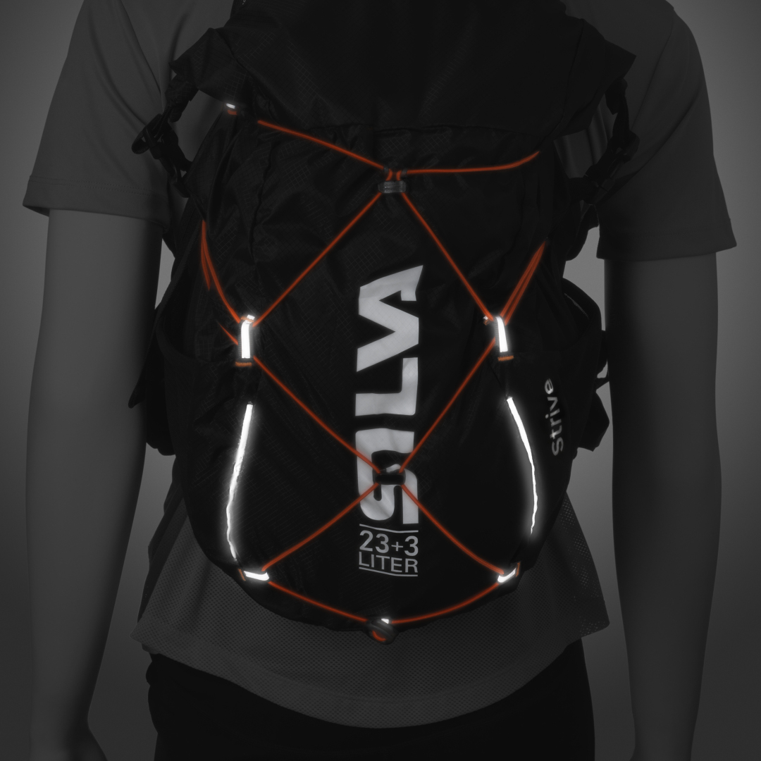 Silva Strive Mountain Pack 23+3 se stane tvým věrným parťákem při dobrodružných závodech a všude tam kde oceníš dobře padnoucí batoh s nízkou hmotností, ideální na dlouhé horské běhy a fast hiking. Propracovaný batoh s roll top uzavíráním hlavní komory zaujme každého minimalistu. Zvládneš do něj sbalit vše potřebné i na vícedenní akci, včetně ultralight spacáku a karimatky. Komfortní zádový systém Silva Embrance – je navržen tak, aby správně obepínal tělo, nabalený batoh sedí na zádech i při intenzivní aktivitě jako přibitý. O dobré odvětrání a odvod potu se postará strukturovaný mesh materiál. Snadno dostupné kapsy, dvě zipové na bederním pásu a shora přístupné na bocích batohu, na ramenních popruzích jsou kapsy pro hydratační láhve o objemu 2x500ml – lze dokoupit. Samostatná kapsa v zádovém systému pojme vak o objemu 1000ml – lze dokoupit, je zde i menší kapsa pro umístění baterie čelovky. Součástí zádového systému je vyjímatelná pěnová výztuha, použitelná jako podložka k sezení. Reflexní prvky a píšťalka se postarají o tvou bezpečnost.