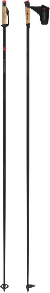 AJ5005906 běžecké hole atomic tubus carbon ultra korkový grip systém QRS- quick release system poutko power strap ultra košík racing M wolframový hrot barva červená/černá hmotnost 145g (155cm)
