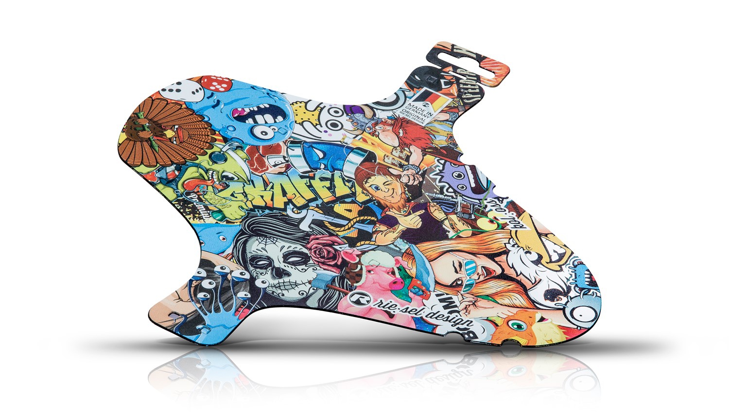 Jednoduchý a funkční blatníček na vidlici a zadní stavbu v cool designu Rie:sel. Větší bráška od Schlam:PE - delší o "nos". Upevnění pomocí stahovacích pásek (nejsou součástí balení). Odolný proti poškrábání.