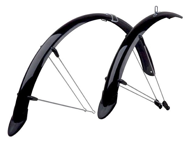 černé lesklé plastové blatníky se vzpěrami pro MTB 29" se zástěrkou