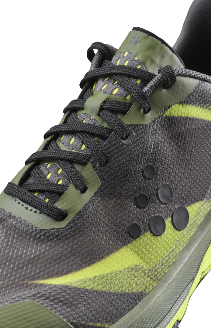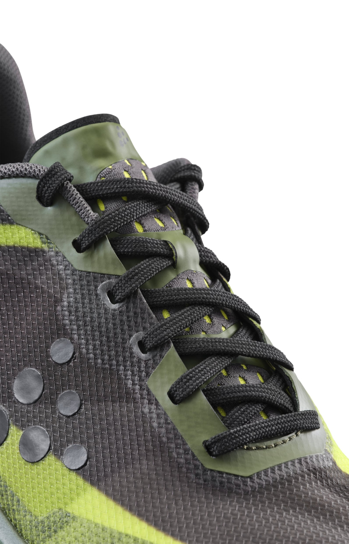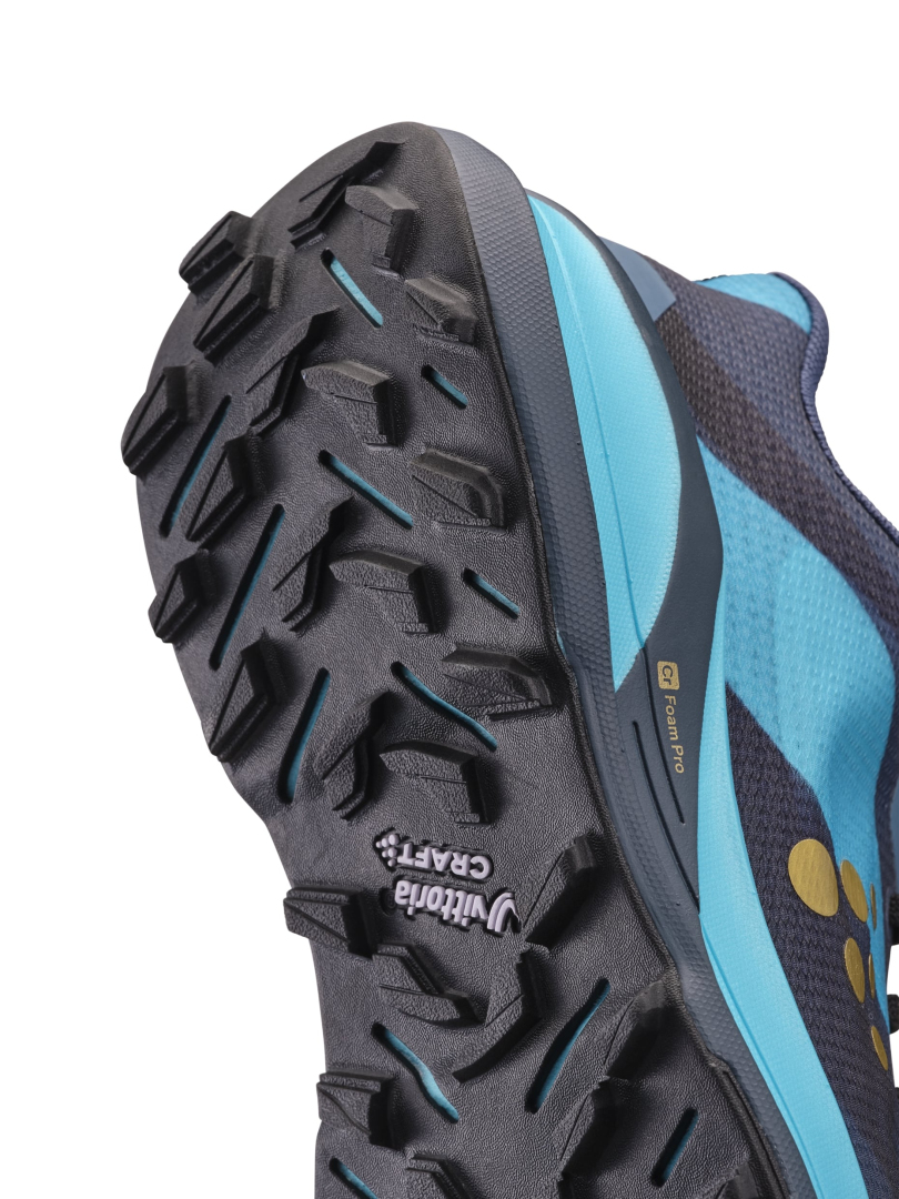 Pánská trailová bota CRAFT Pure Trail Pro cílí na ambiciózní trailové běžce, kteří hledají maximální rychlost, stabilitu a zároveň tlumení. Tato bota využívá novou pěnu v mezipodešvi Cr Foam Pro™. Ta kombinuje dusíkovou pěnu s Pebaxem (15 %), což vytváří skvělou kombinaci vysoké stability, optimální míry tlumení a maximální síly do odrazu. To vše při zachování minimální váhy. Podešev vytvořená ve spolupráci se společností Vittoria využívá směs HyperGrip™, která zajistí jistý grip na jakémkoliv povrchu. Svršek z odolného polyesterového ripstopu, zpevněný TPU pro větší odolnost, je navržen pro ty, kteří hledají dobrodružství a výkon. Bota byla důkladně testována běžci z Craft Elite Run týmu, kteří garantují že obstojí i v nejnáročnějších trailových podmínkách, a to při zachování pohodlí a stability.