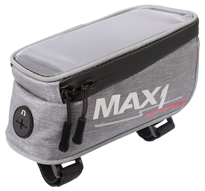 Kompaktní brašna MAX1 na rámovou trubku s kapsou uzpůsobenou pro mobilní telefon.