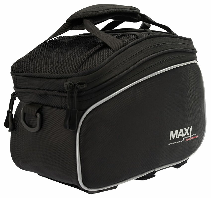 - víceúčelová brašna na nosič s nastavitelným objemem (rozepnutím horního zipu)