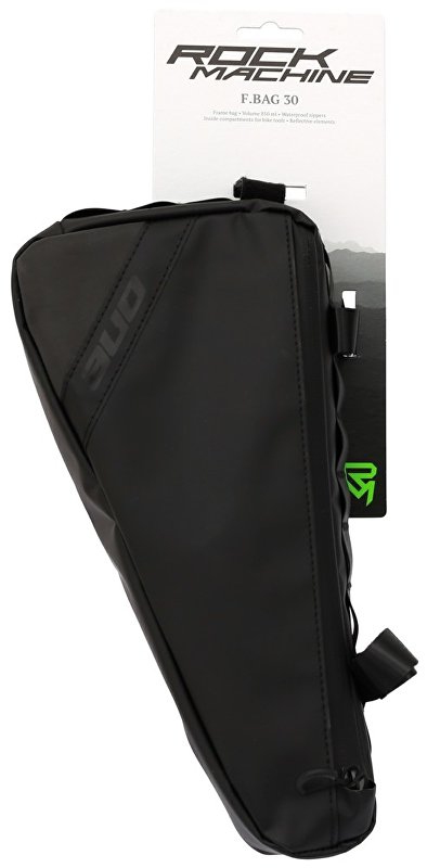 Voděodolná rámová brašna ROCK MACHINE F.Bag 30 s podlepenými zipy a uchycením na suché zipy s reflexními prvky.