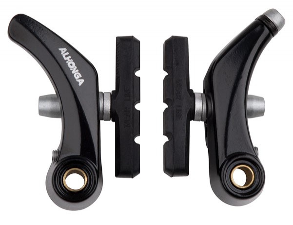 AL Cantileverové brzdové čelisti ALHONGA, černé, sada na celé kolo materiál AL, rozsah 21-35mm, špalíky 60mm, hmotnost 175g sada, balení obsahuje: 2 páry brzd, 2ks spojovacího lanka, 2ks trojúhelníkového táhla, 2 ks koncovky lanka