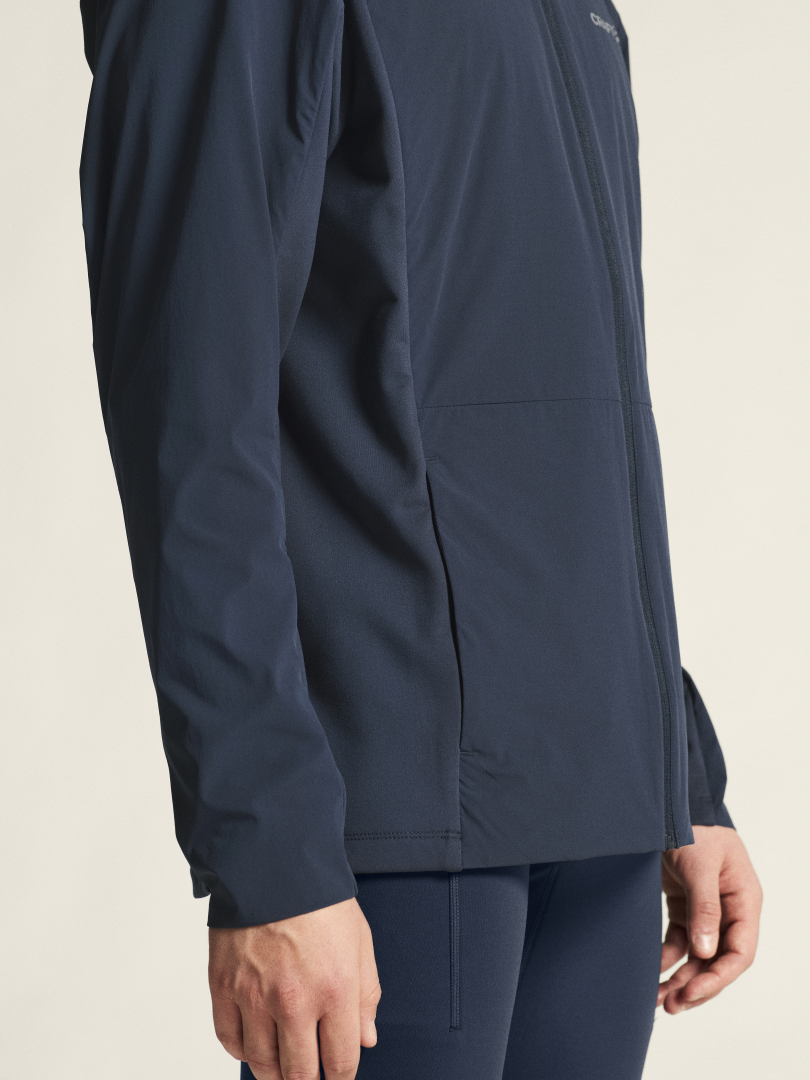 Teplá multisportovní bunda CRAFT ADV Essence Warm 3 disponuje větruodolnou vrstvou v přední části, na ramenou a rukávech. Tu doplňuje plnění dutým vláknem pro vyšší tepelný komfort. Zbytek tvoří velmi elastické a prodyšné panely, které z vnitřní části pokrývá příjemný fleece. Na stranách jsou kapsy na zip.