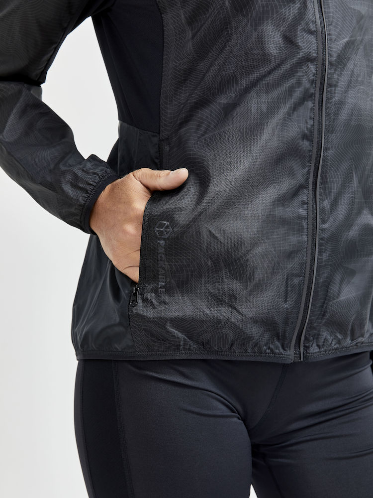 Dámská běžecká větruodolná bunda CRAFT PRO Hypervent z velmi lehkého a jemného materiálu s voděodpudivou vrstvou pro intenzivní běh.