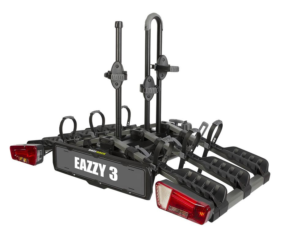 BUZZ EAZZY 3 je určen k přepravě 3 jízdních kol. Spolehlivý nosič na tažné zařízení se stylovým designem za přijatelnou cenu. Je vybaven plnou světelnou rampou s 13PIN zástrčkou. Namontujete jej na jakékoliv tažné zařízení a poskytuje nosnost až 60kg. Maximální hmotnost jednoho jízdního kola je 20kg. Pokud nosič právě nepoužíváte, lze jej poskládat do kompaktních rozměrů.