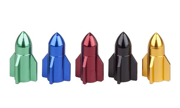 ozdobná čepička ventilku AV ve tvaru raketky, modrá (pár)