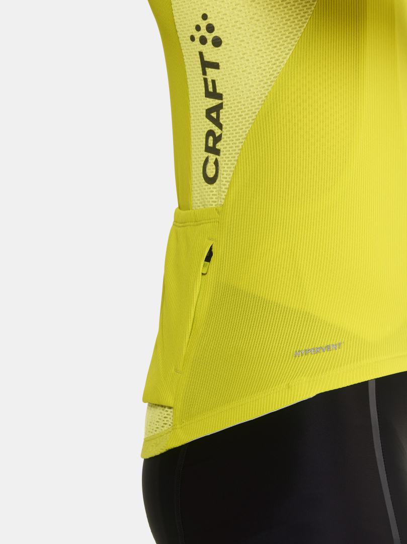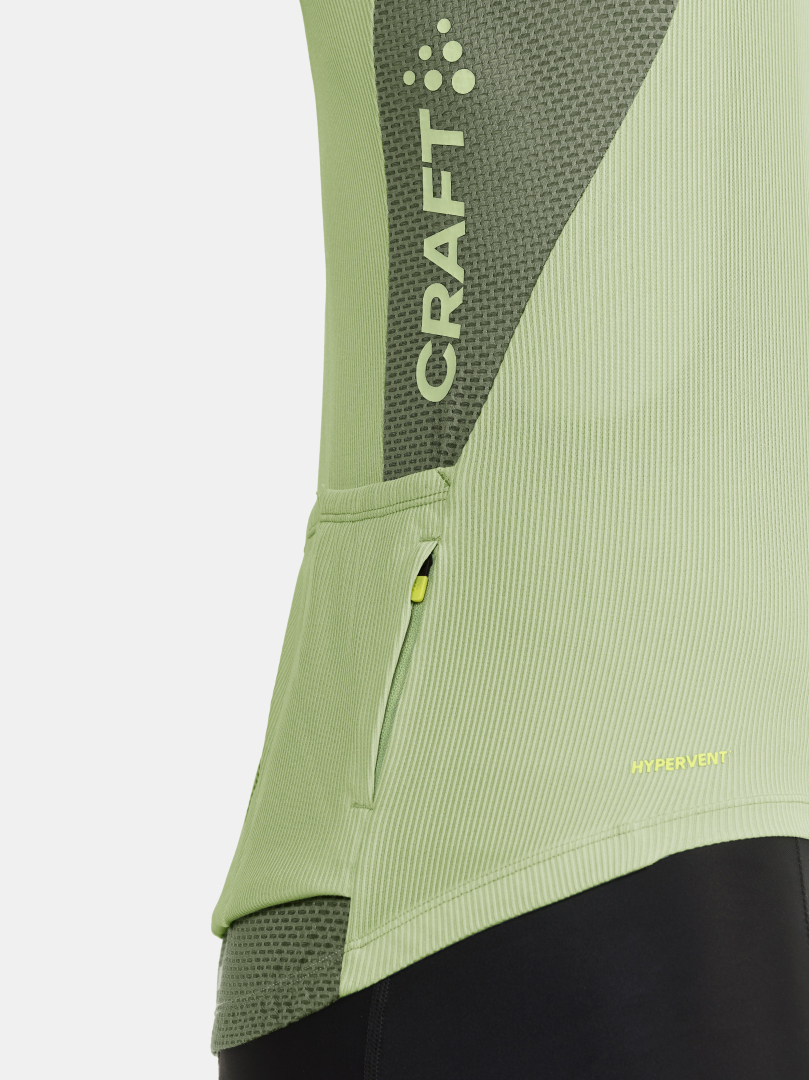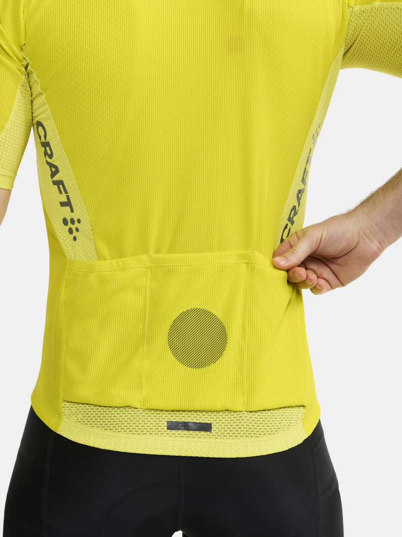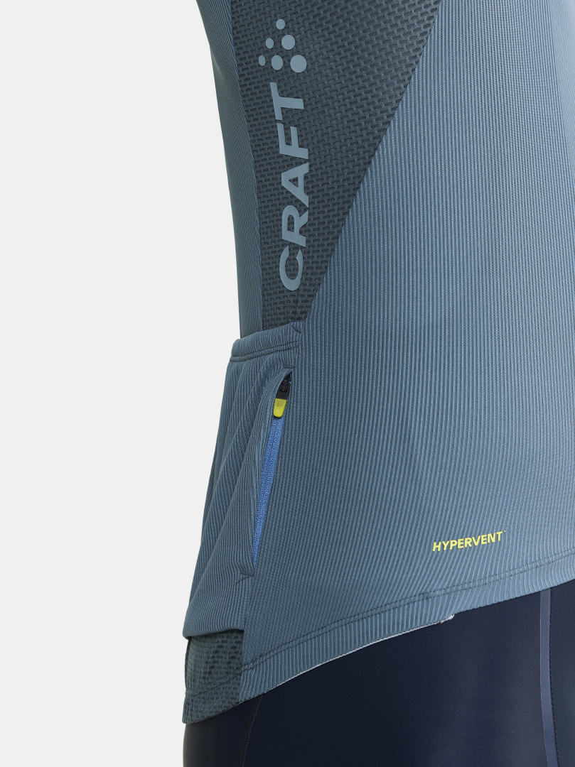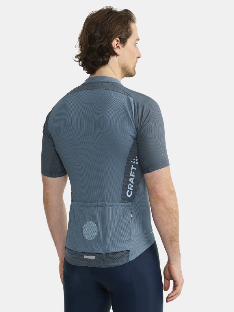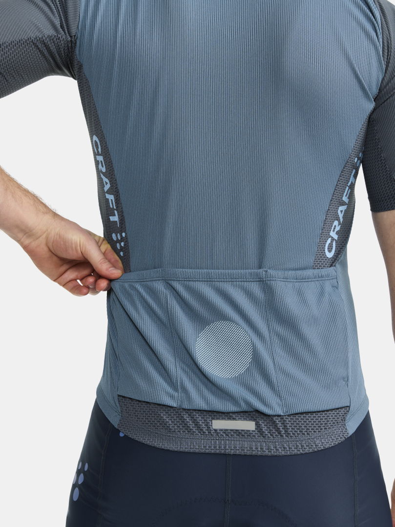 Pánský technicky pečlivě propracovaný cyklistický dres CRAFT ADV Endur s rib strukturou. Materiál: 100% recyklovaný polyester; boky: 87% recyklovaný polyester, 13% elastan - výborný odvod potu, rychleschnoucí, chladivý efekt - ergonomický střih - meshové panely na bocích, z vnitřní strany rukávů, za krkem a v zadní části dresu - zip podložený légou - speciální tvarování límce v oblasti zátylku pro vyšší komfort při jízdě - ve spodní části vzadu stažení do gumy se silikonovým potiskem z vnitřní strany - v zadní části trojdílná kapsa plus kapsička na zip