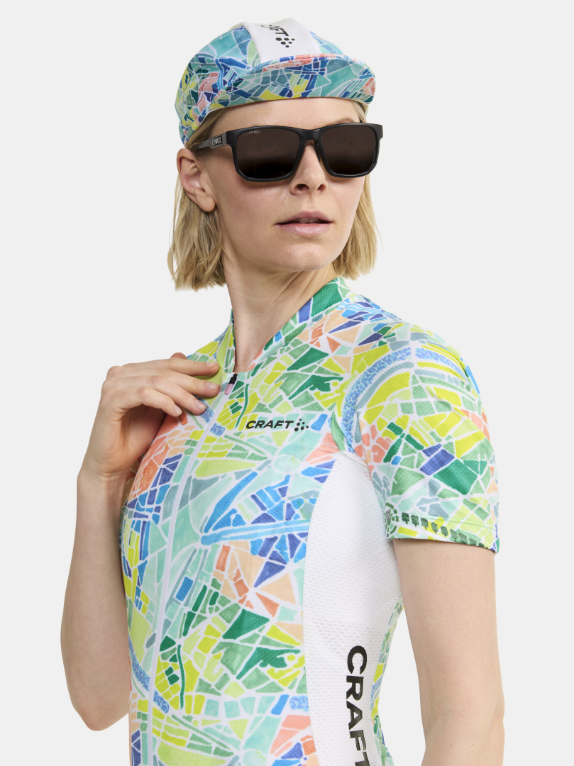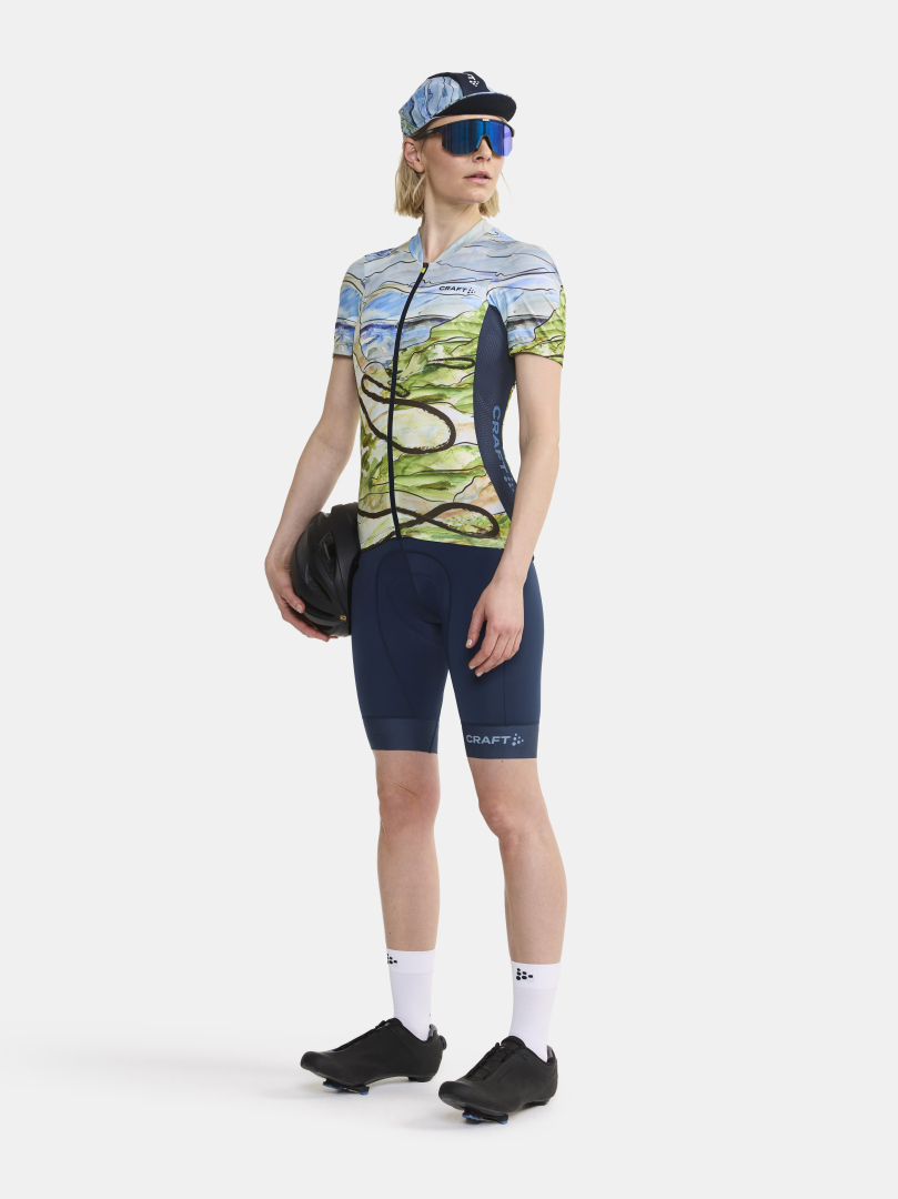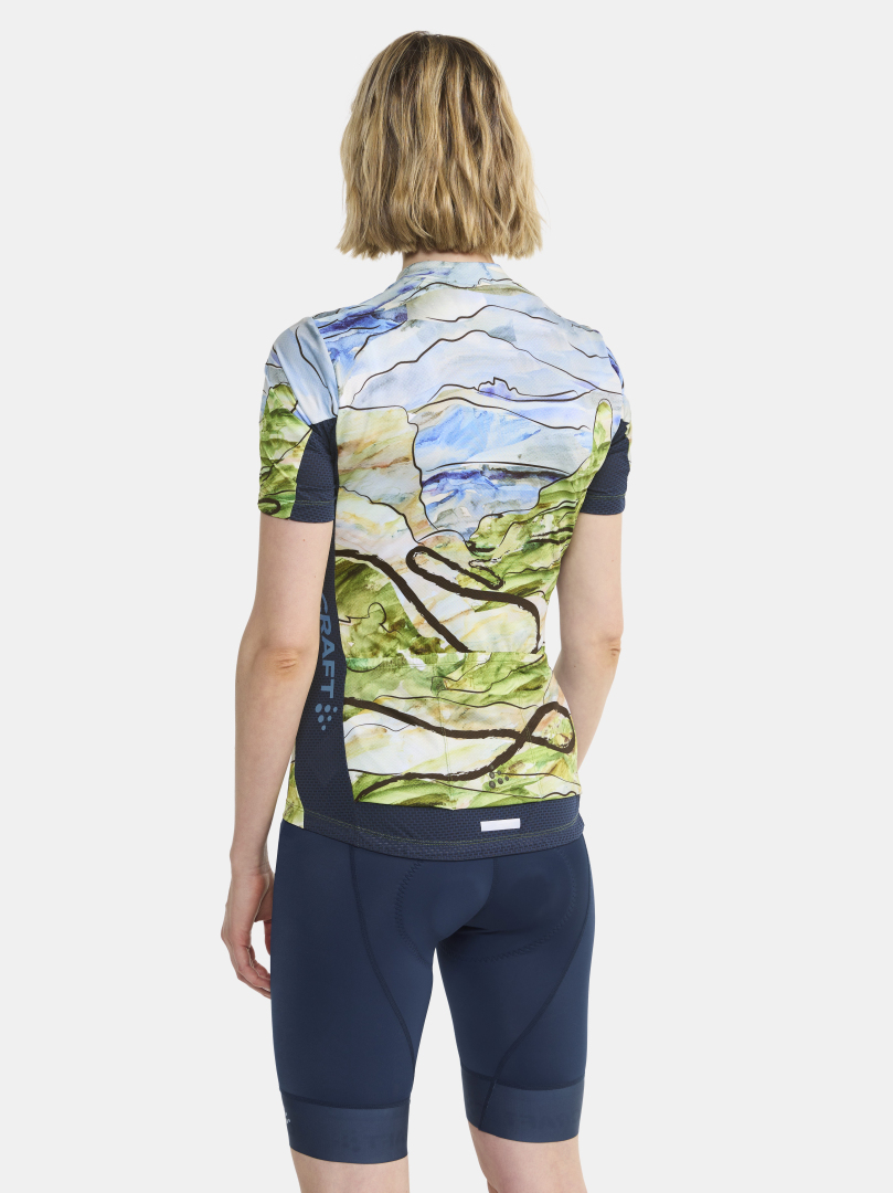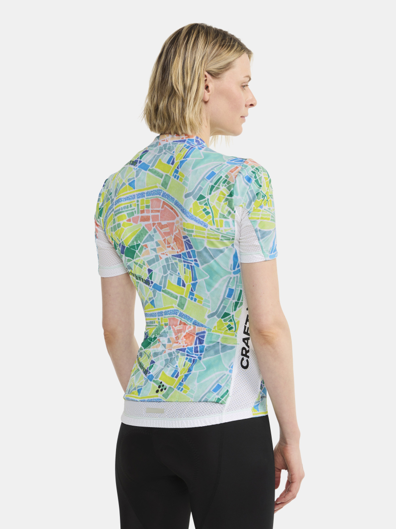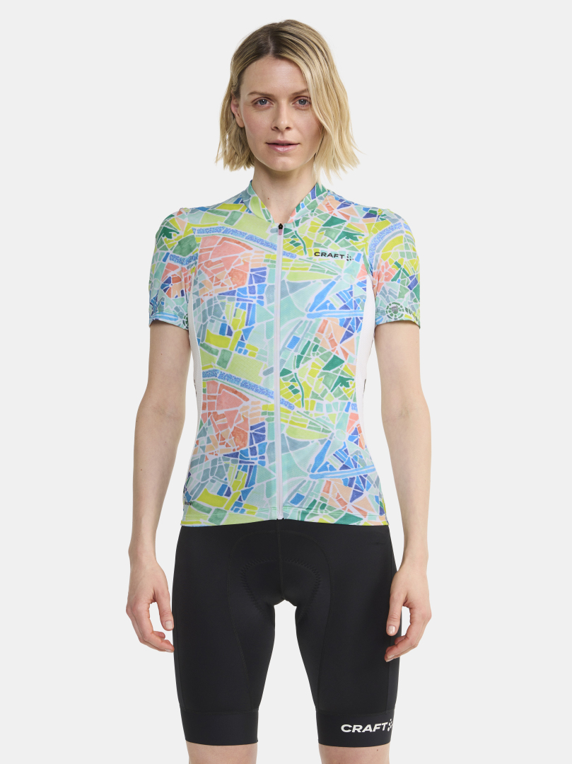 Dámský, technicky pečlivě propracovaný cyklistický dres CRAFT ADV Endur Graphic s atraktivním barevným potiskem oblíbených cyklistických destinací - CHAMPS - ÉLYSÉES, KOPPENBERG, SA CALOBRA Materiál: 86% recyklovaný polyester, 14% elastan; 87% recyklovaný polyester, 13% elastan - výborný odvod potu, rychleschnoucí, chladivý efekt - ergonomický střih - meshové panely na bocích, z vnitřní strany rukávů a v zadní části dresu - zip podložený légou - speciální tvarování límce v oblasti zátylku pro vyšší komfort při jízdě - ve spodní části vzadu stažení do gumy se silikonovým potiskem z vnitřní strany - v zadní části trojdílná kapsa se skrytou kapsičkou na zip