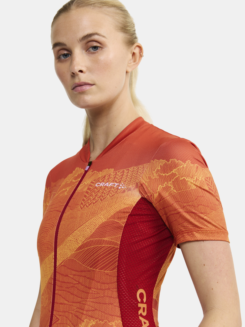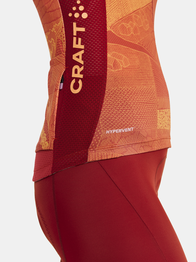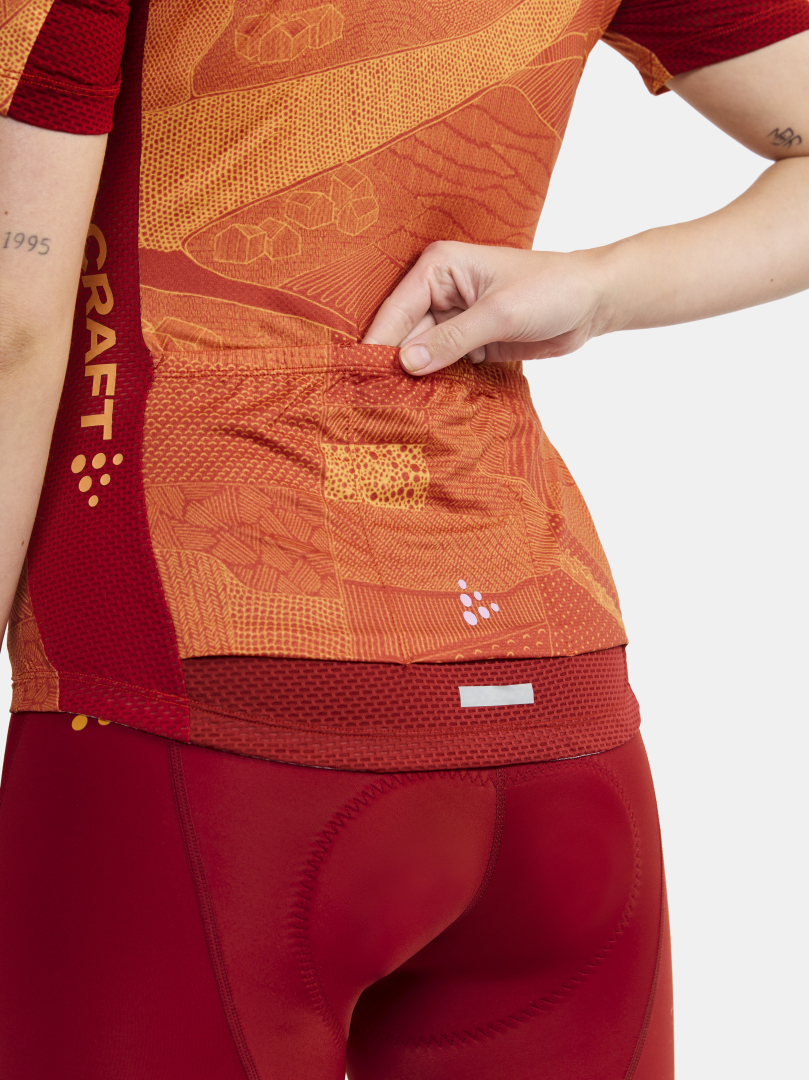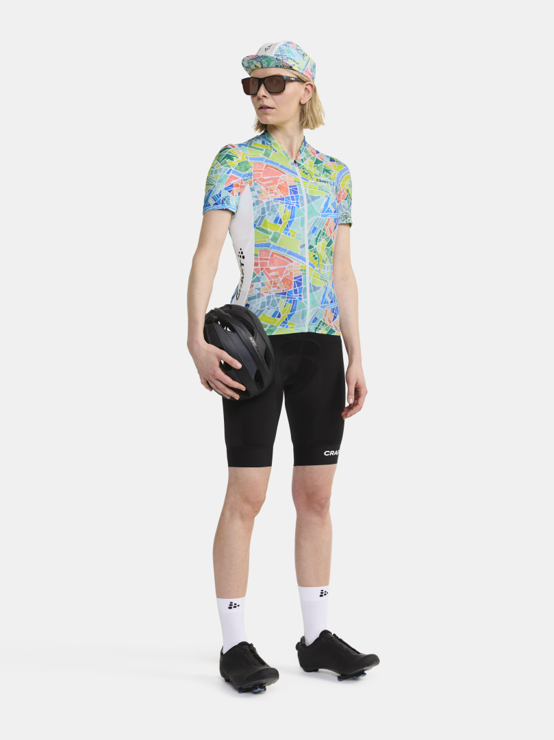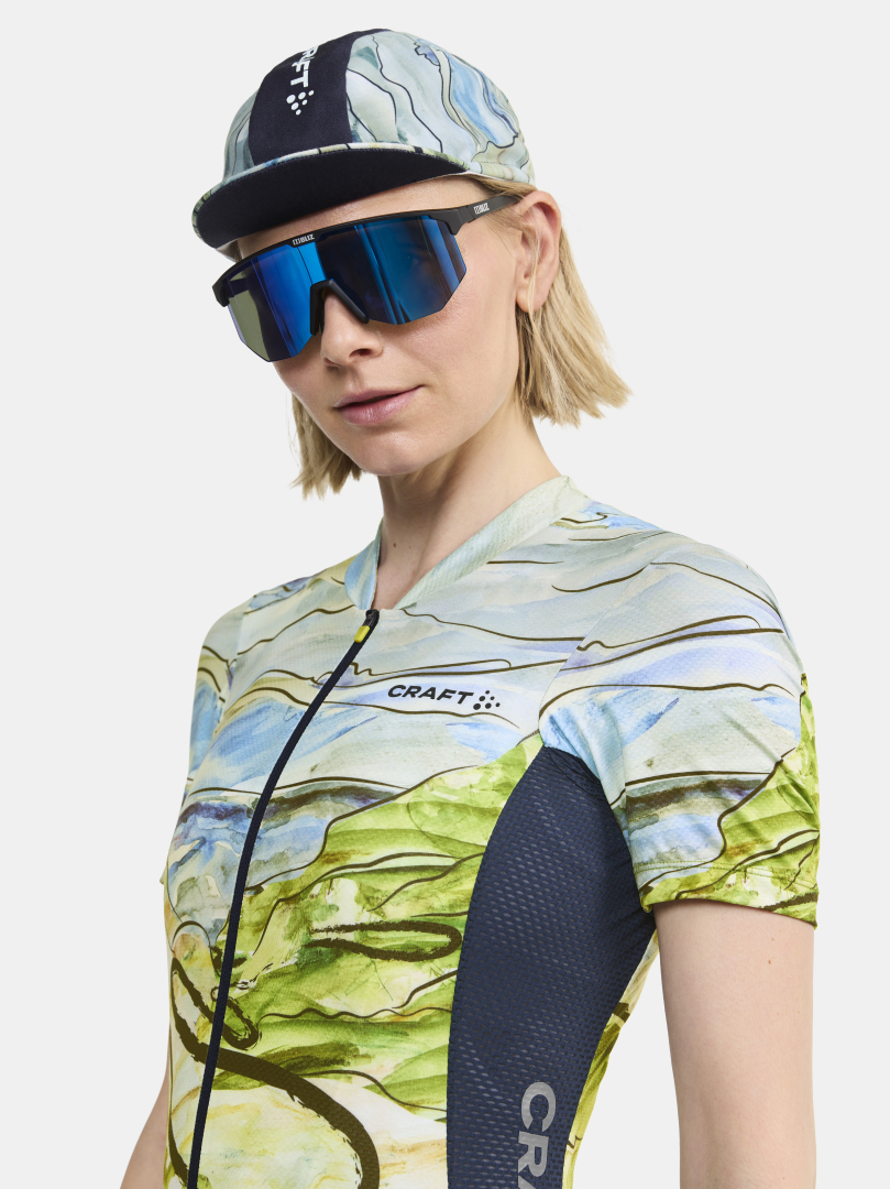 Dámský, technicky pečlivě propracovaný cyklistický dres CRAFT ADV Endur Graphic s atraktivním barevným potiskem oblíbených cyklistických destinací - CHAMPS - ÉLYSÉES, KOPPENBERG, SA CALOBRA Materiál: 86% recyklovaný polyester, 14% elastan; 87% recyklovaný polyester, 13% elastan - výborný odvod potu, rychleschnoucí, chladivý efekt - ergonomický střih - meshové panely na bocích, z vnitřní strany rukávů a v zadní části dresu - zip podložený légou - speciální tvarování límce v oblasti zátylku pro vyšší komfort při jízdě - ve spodní části vzadu stažení do gumy se silikonovým potiskem z vnitřní strany - v zadní části trojdílná kapsa se skrytou kapsičkou na zip