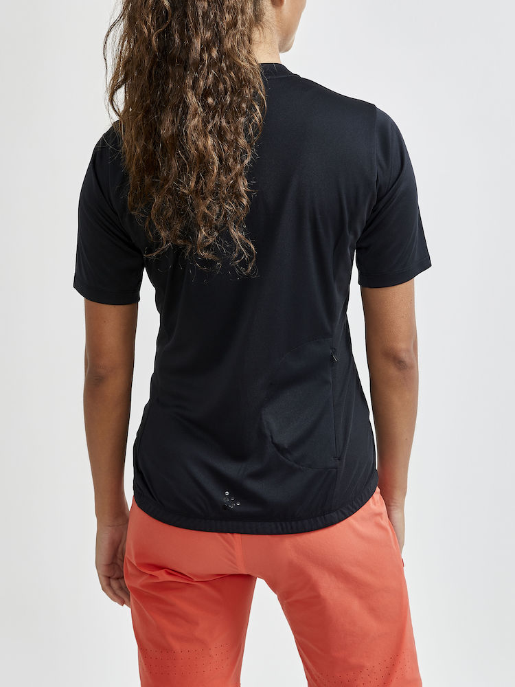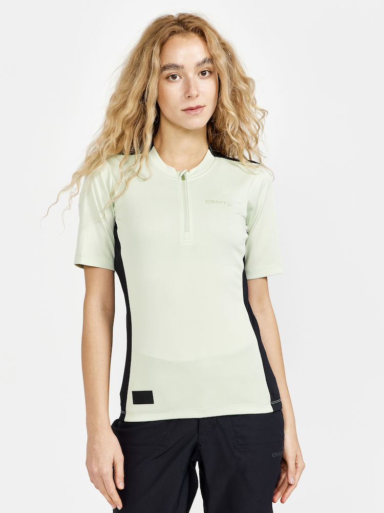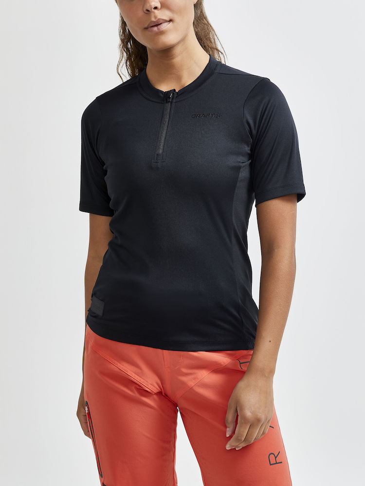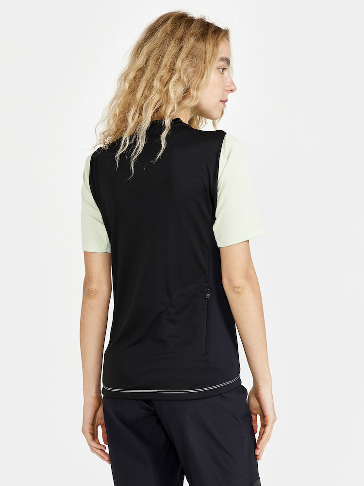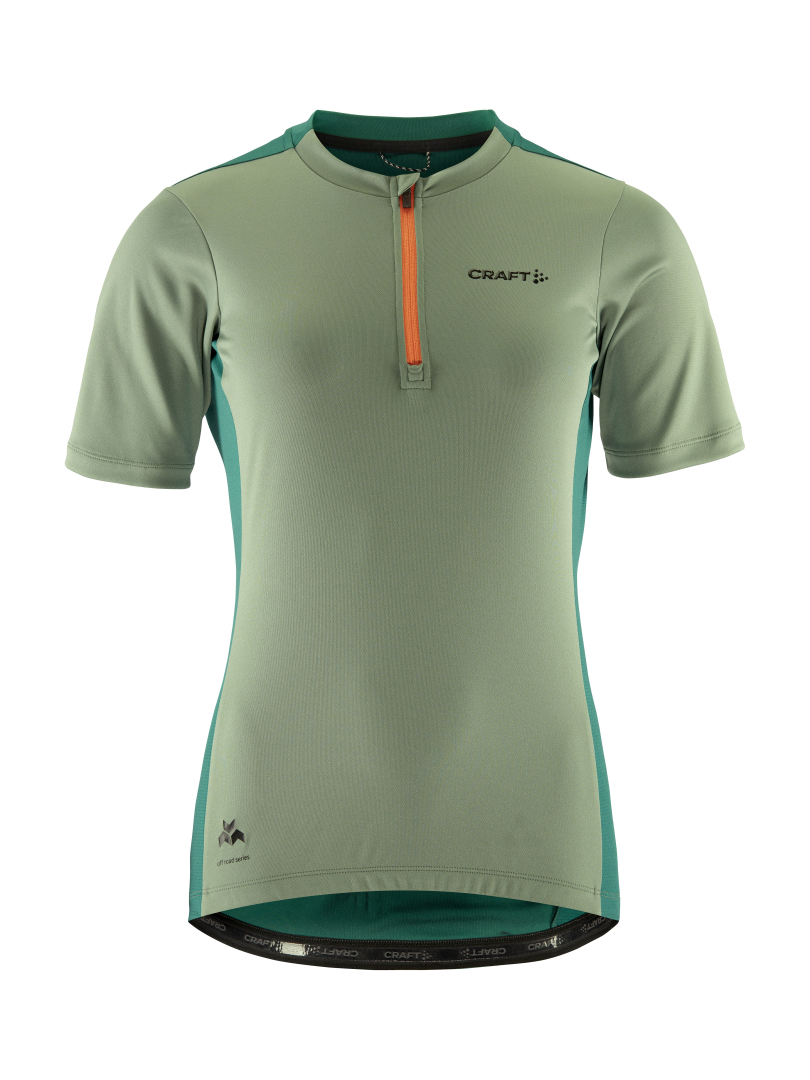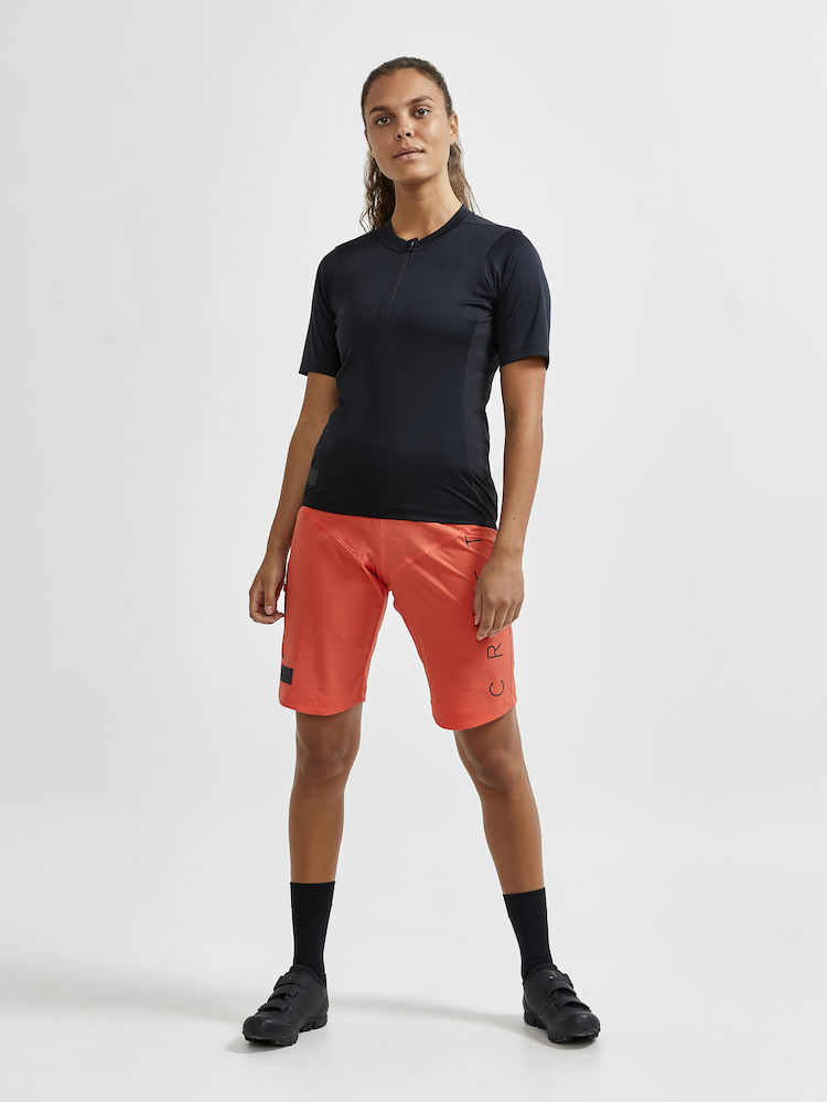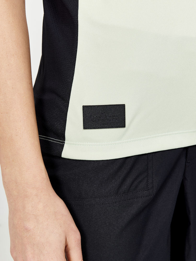 Dámský cyklodres CRAFT CORE Offroad volnějšího vzhledu je ideálním řešením pro MTB nebo gravel cyklistky, které preferuji komfortní střih před vypasovaným střihem.