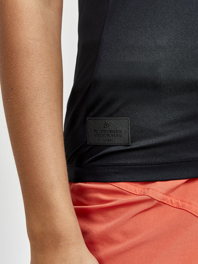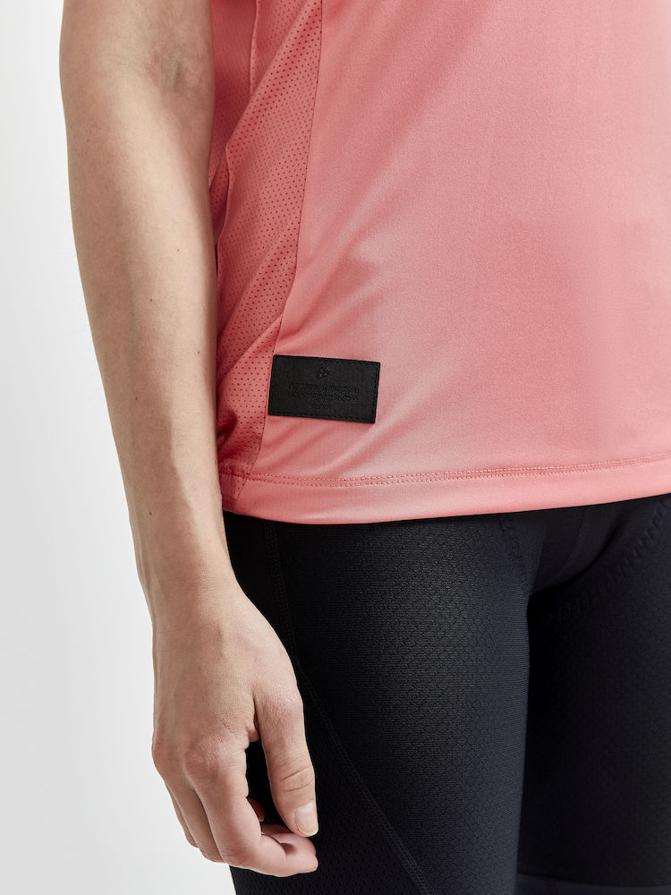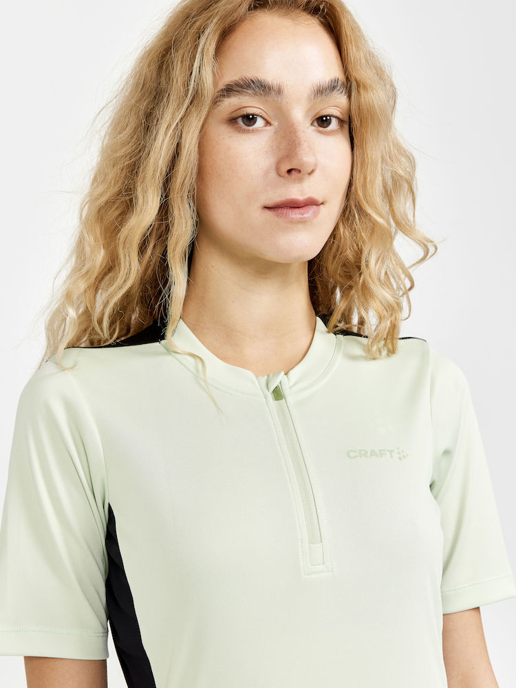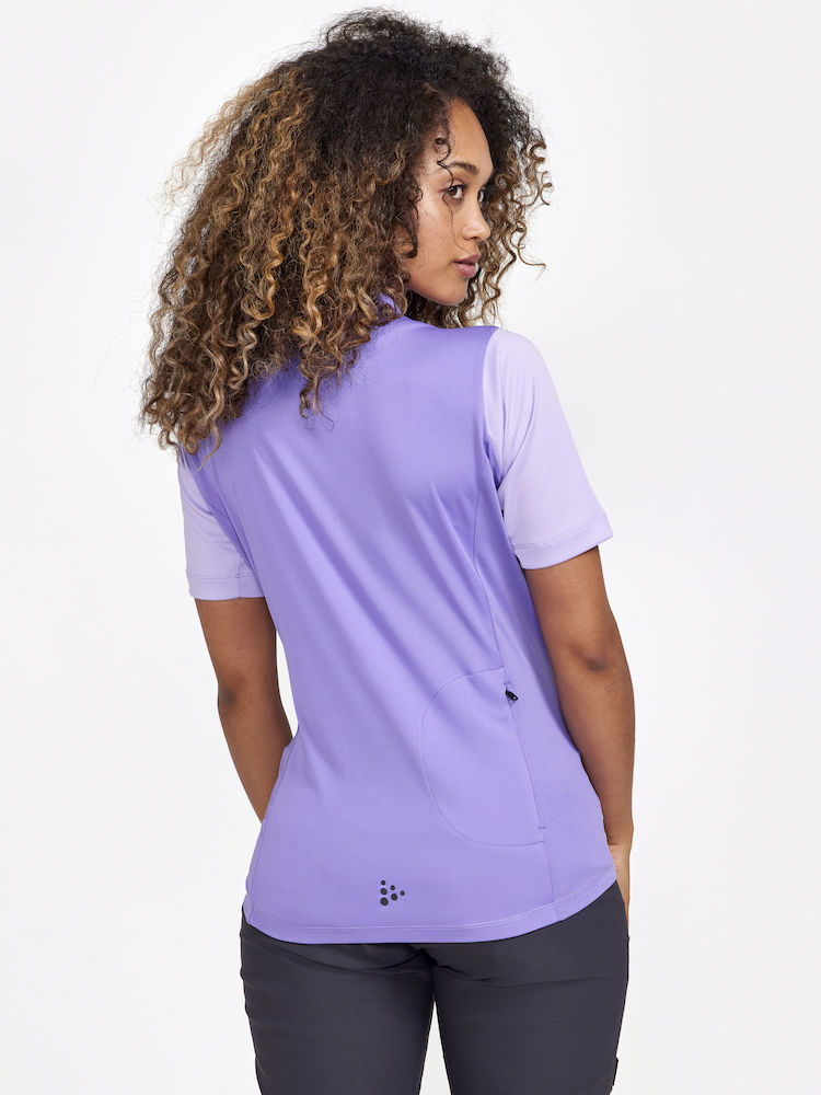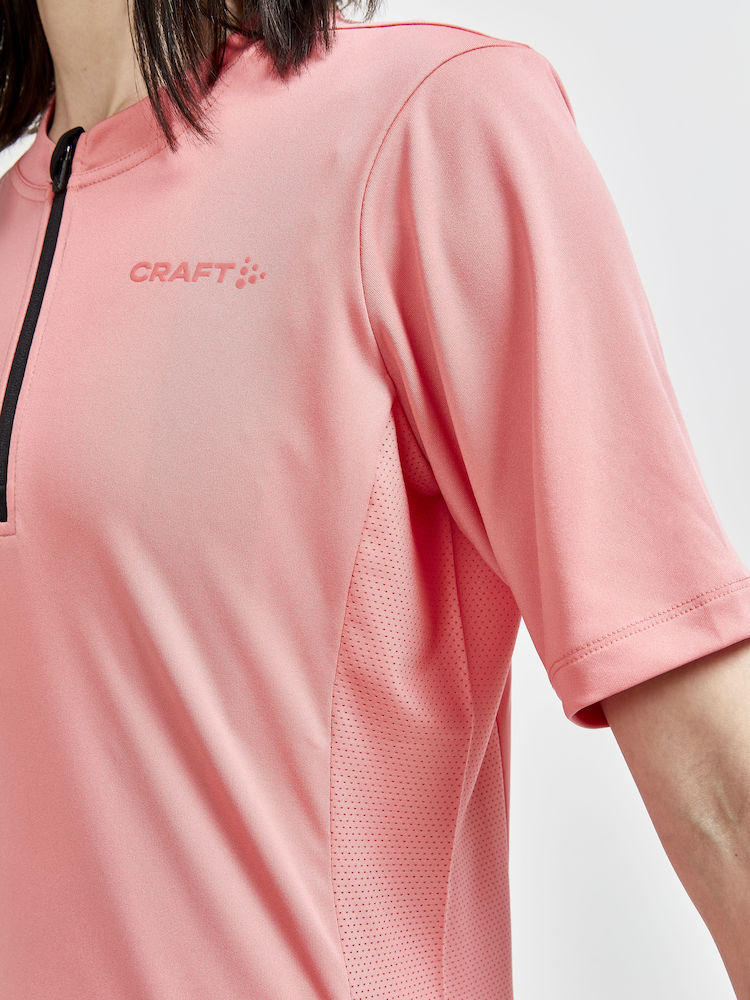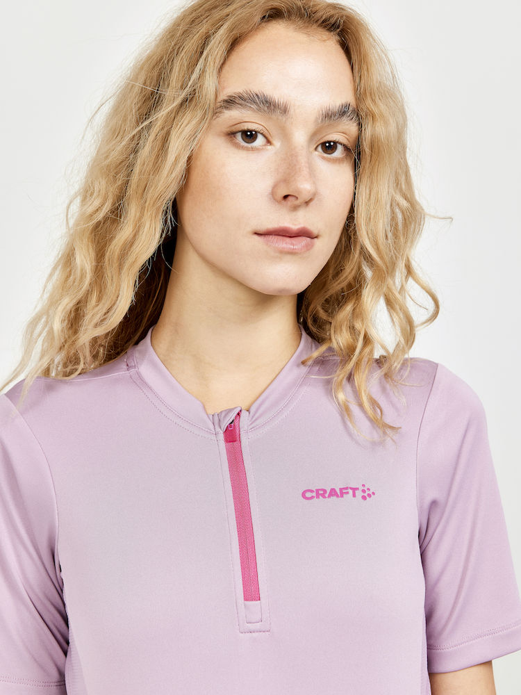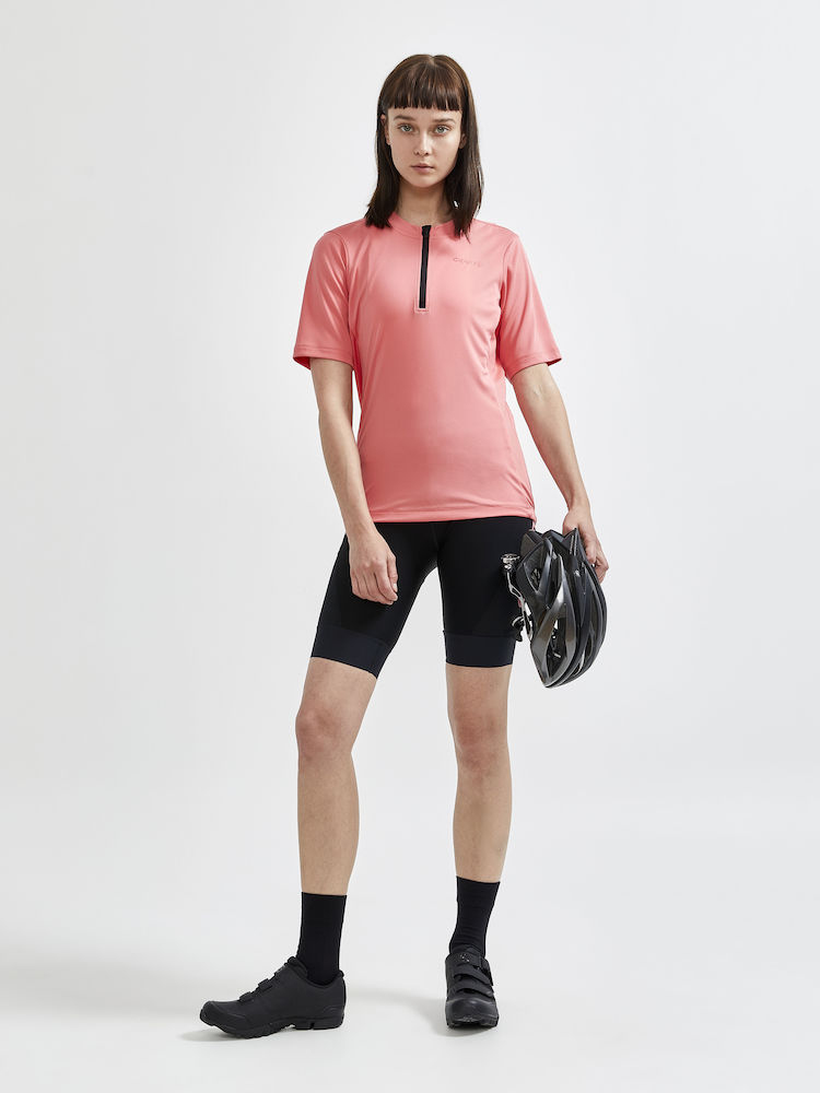 Dámský cyklodres CRAFT CORE Offroad volnějšího vzhledu je ideálním řešením pro MTB nebo gravel cyklistky, které preferuji komfortní střih před vypasovaným střihem.