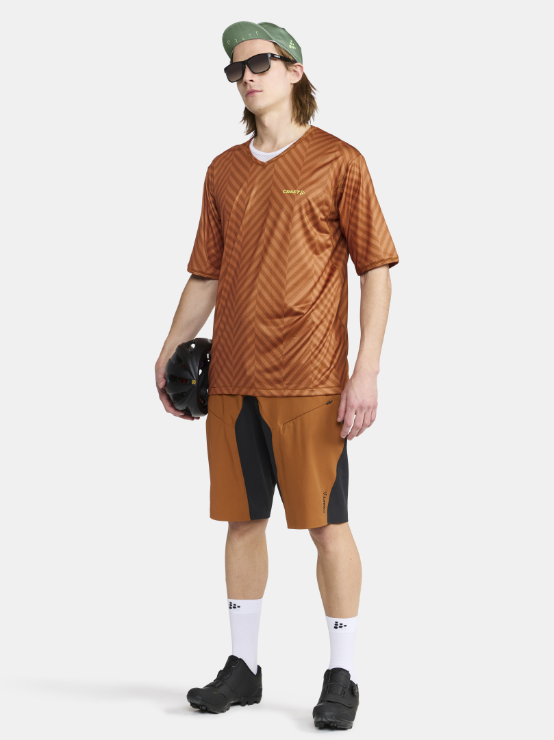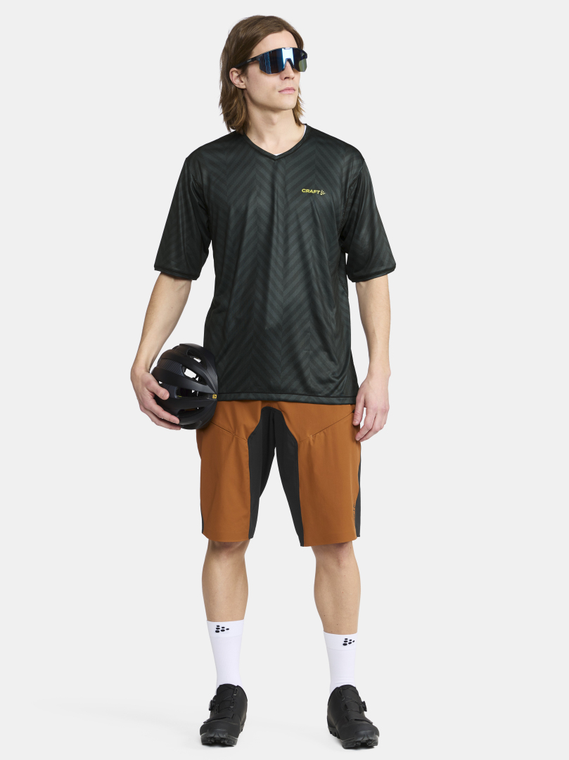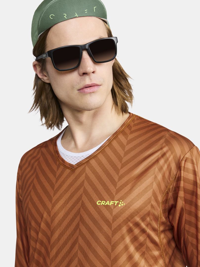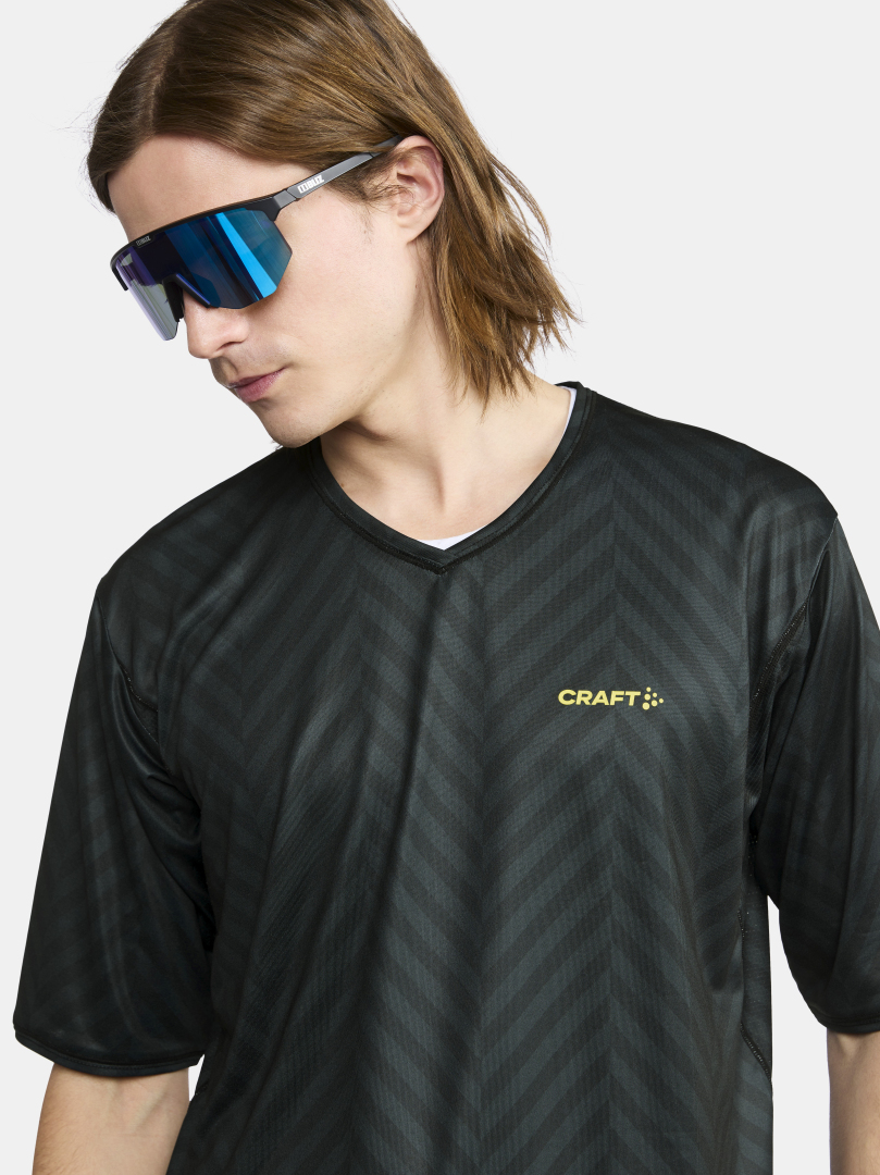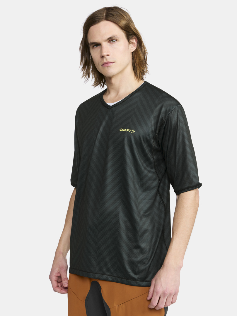 Pánský dres CRAFT CORE Offroad XT volného střihu pro určený zejména pro bikery. Materiál: 100% recyklovaný polyester - v zádové části a v podpaží prodyšnější materiál - delší rukávy - odolnější vůči oděru