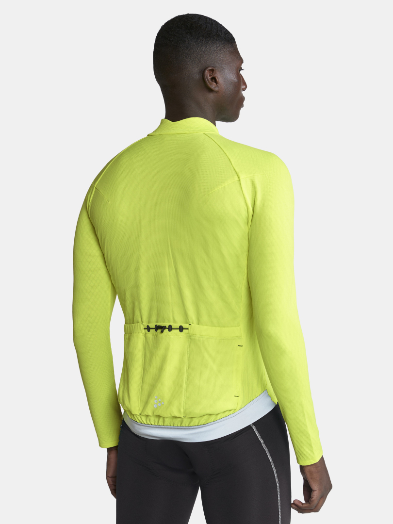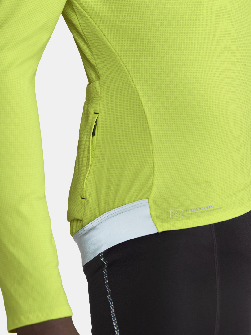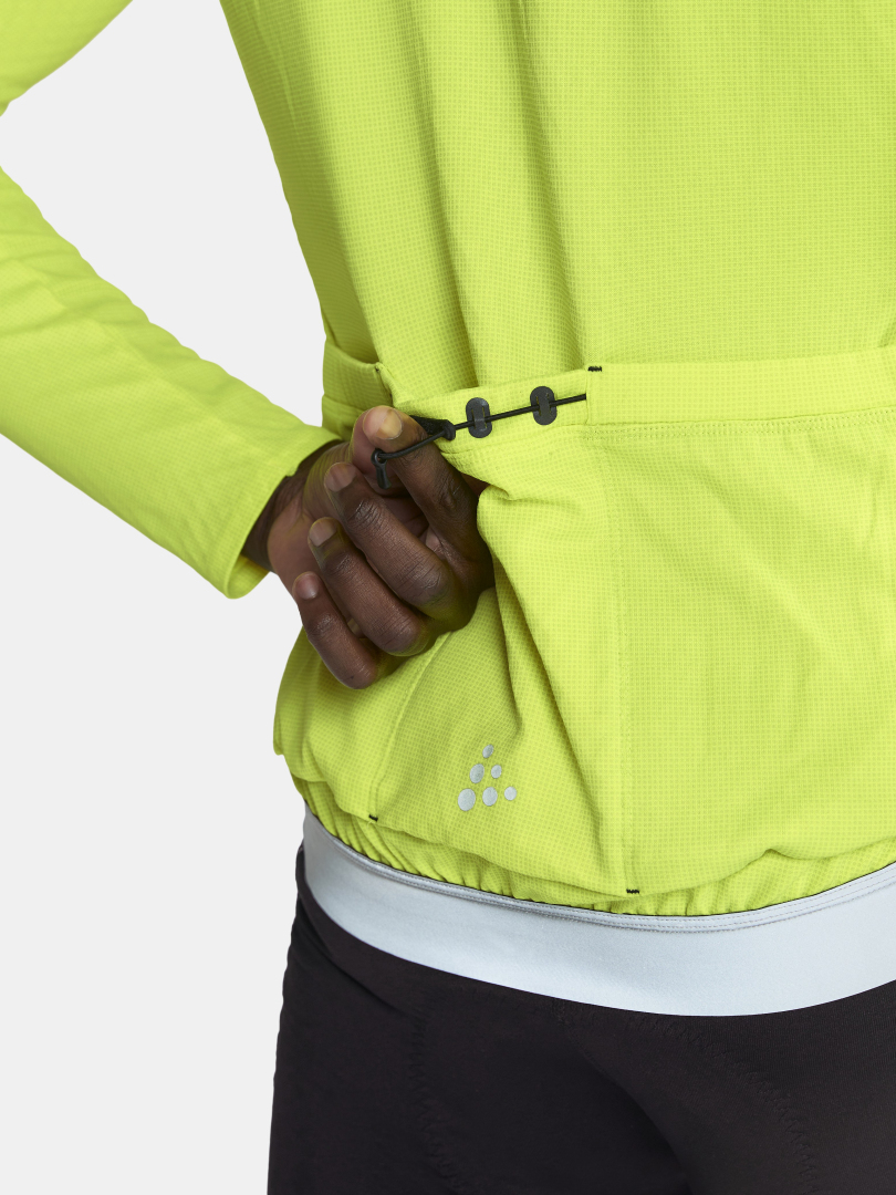 Pánský extrémě zdařile technicky propracovaný zateplený cyklistický dres CRAFT SubZ Lumen je určený pro jízdu v chladných, tmavých podmínkách. Bezpečnost cyklisty zajistí nejen žlutá reflexní barva, ale také zdánlivě decentní reflexní potisk, který cyklistu rozzáří při jeho nasvícení. Materiál: 92% polyester, 8% elastan - z vnitřní strany jemně česaný fleece s grit úpravou vyšší prodyšnost - z vnější strany odolnější povrch vůči větru - po celém vnějším obvodu reflexní potisk z velmi drobných reflexních kostiček - předtvarovaný límec - ergonomický střih - středový zip podložený légu a ukončený do ochrany brady vůči oděru - rukávy ukončeny do lepených švů - dres ve přední části ukončený do lepeného švu a boky a zadní část do široké gumy se silikonovým potiskem - reflexní prvky - v bederní části tři kapsy a jedna boční na zip