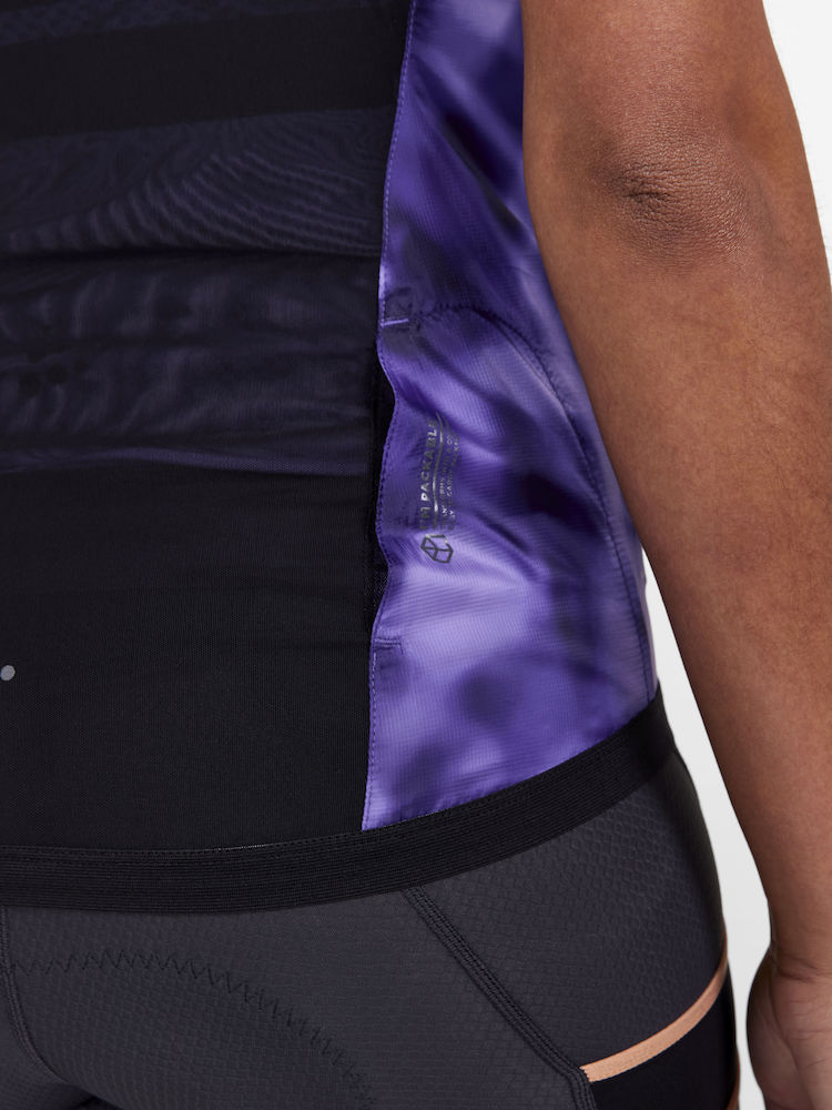 Dámská technicky vysoce propracovaná, ultralehká, snadno sbalitelná cyklistická vesta z řady Gravel CRAFT PRO Gravel Wind vhodná na vyjížďky v proměnlivém počasí.