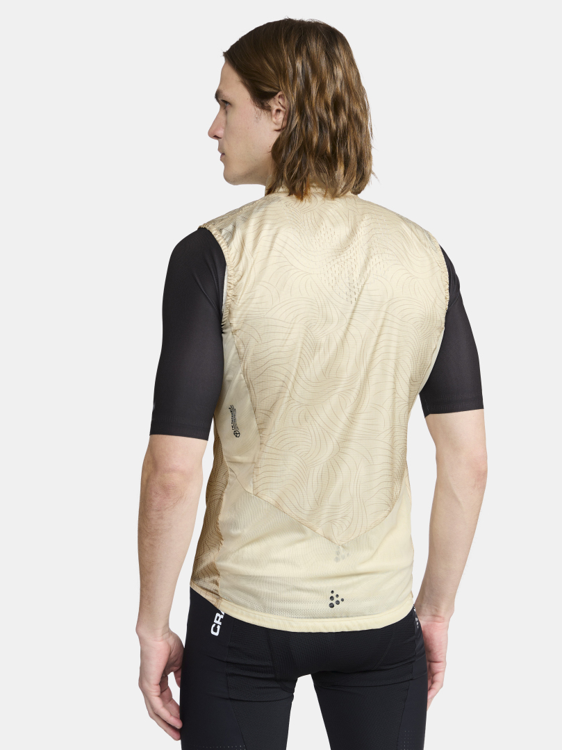Pánská ultralehká, snadno sbalitelná cyklistická vesta CRAFT PRO Nano Wind vhodná na vyjížďky ve větrném počasí. Ideální parťák, který je vždy po ruce. Materiál: 45% recyklovaný polyester, 55% polyester, boční panely - 88% polyamid, 12% elastan - naprosto větruodolný materiál - ripstopový materiál odolný vůči oděru a roztrhnutí - ergonomicky řešený střih odpovídající jezdecké pozici na kole - po bocích a ve spodní části v oblasti beder síťovaný materiál pro rychlejší odvod potu - vesta ukončena ve spodní části do jemné pružné gumky - vestu lze sbalit do boční kapsy - jemný fleece z vnitřní strany límce - límec předtvarovaný pro vyšší komfort při jízdě - mezi lopatkami laserově řezaná ventilace - zip podložený légou