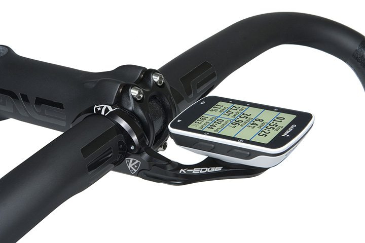 Profesionální držák pro computery řady Garmin Edge 20, 25, 200, 500, 510, 520, 820. CNC obráběný držák v černé anodizované barvě. Umístění computeru před řidítka v jedné rovině s horní částí řidítek. Výměnná plastová vložka pro Garmin computery. Pro řidítka o průměru 35 mm. (např. DEDA). Bezpečné i pro carbonová řidítka.