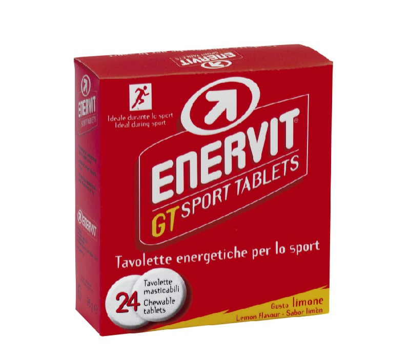 Energetické tablety pro rychlé zažehnání nastupující únavy i pro průběžné doplňování energie. Rychle dostupná energie, kterou máte vždy po ruce. Kdy a jak použít: Při námaze je možné konzumovat od 6 do 14 kusů, v závislosti na intenzitě a délky trvání fyzické námahy. Tabletu vždy důkladně rozkousejte a potom zapijte nápojem (např. Enervit G Sport) - tablety obsahují protikřečové minerální látky - jsou určené pro přímou konzumaci - doba nástupu účinku je okamžitá, doba účinku 1 tablety je cca 20 minut Účinky: - energetické tablety pro okamžité doplnění rychle vstřebatelné energie (maltodextrin, dextróza) a potlačení únavy z nedostatku energie - fruktóza zajistí průběžné a postupné doplňování energie - doplněné o vitamíny skupiny B a C, dále minerální látky sodík a hořčík - vitamíny B (B1, B2, B3 a B5) přispívají ke snížení vyčerpání a únavy a ke správnému energetickému metabolizmu - lehká manipulace po dobu výkonu, lehce se rozpouští v ústech Přednosti: Nezaberou mnoho místa, při sportu nepřekáží, ale zato odvedou výbornou službu doplněním energie i protikřečových minerálů. Složení: Fruktóza (31,5%), dextróza (28,3%), sacharóza (26,7%), maltodextrin (3,9%), kyselina citrónová, zahušťovadlo: arabská guma, aroma, zvlhčovadlo: mono- a diglyceridy mastných kyselin, stearát horečnatý, kukuřičný škrob, kofein (0,38%), citran draselný, citran hořečnatý, antioxidant: kyselina askorbová, mix vitamínů, chlorid sodný.