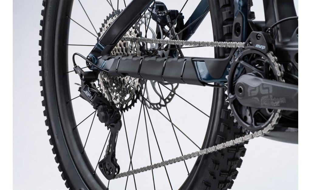 - Dokonale skrytá, avšak snadno přístupná kabeláž, která vede pod ochranným krytem dolní rámové trubky a řetězové vzpěry