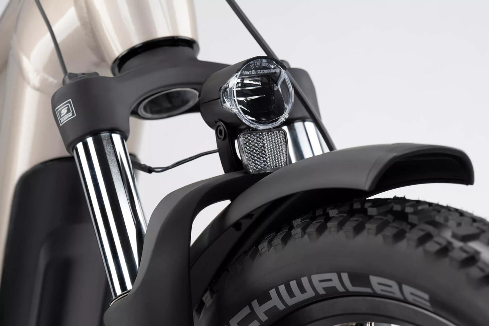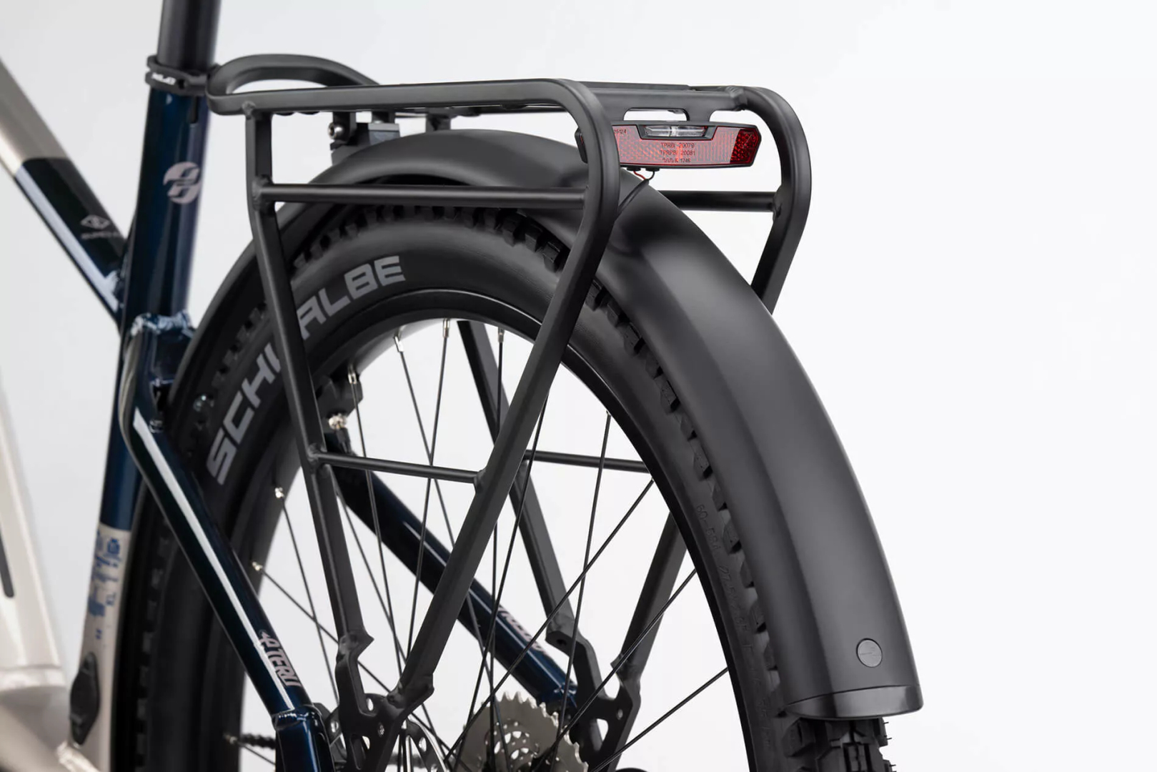 Vyladěná kombinace propracovaného designu, výkonného motoru Bosch Performance CX s 85 Nm kroutivého momentu, 100 mm zdvihu a 27,5palcová kola vám zajistí bezproblémové zdolání jakéhokoli terénu. Ghost E-Teru Universal je jednoduše parťák do nepohody, na kterého se můžete spolehnout. Během jízdy můžete měnit režimy asistence podle toho, jak velkou přípomoc zrovna budete potřebovat. Veškeré jízdní údaje jako jsou vzdálenost, rychlost, stav nabití baterie nebo stupeň asistence se zobrazují na dobře čitelném LED displeji. O bezproblémový chod jízdy se stará řazení Shimano Deore s 1x10 převody a o perfektní brzdný účinek spolehlivé Shimano BR-MT420. Model EQ má navíc v základní výbavě praktický nosič, stojan, blatníky a přední a zadní světlo. Stačí nasednou a vydat se vstříc novým zážitkům!