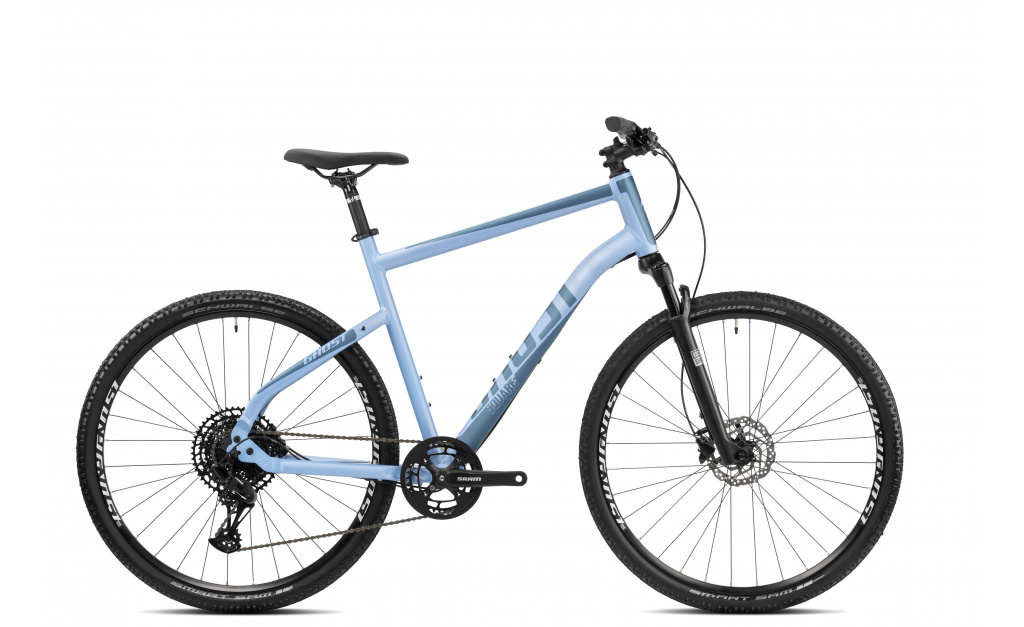 GHOST Square Cross Essentail na lehkém hliníkovém rámu je osazen vzduchovou vidlicí ROCK SHOX Paragon Gold, 12rychlostním řazením SRAM a spolehlivými brzdami SHIMANO.