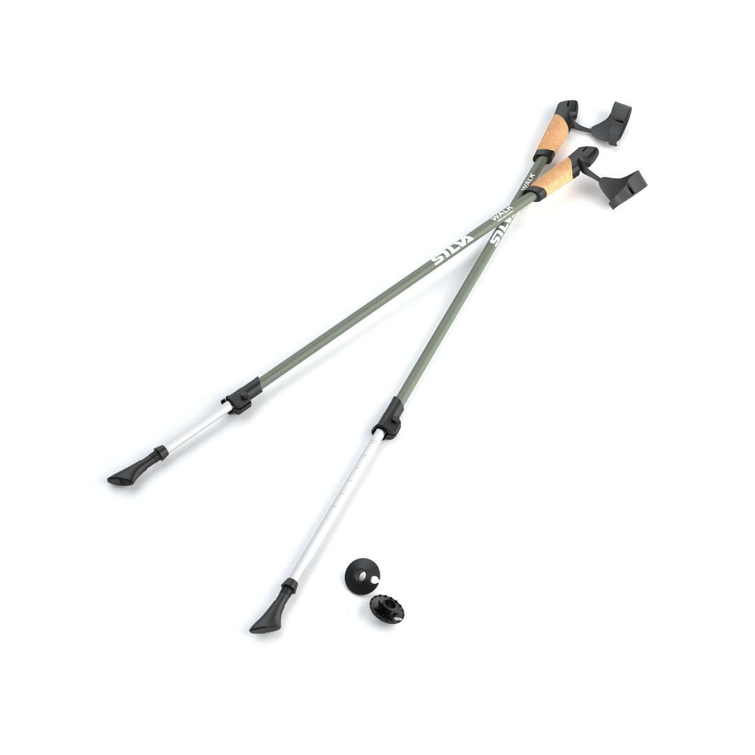Teleskopické hliníkové hole pro nordic walking. Váha: 460g Materiál hole: hliník 7075 (vyšší kvalita slitiny hliníku) Rukojeť: korek - nastavení délky pomocí klipu (flick-lock), 2 dílce - ergonomická rukojeť - pevné a zároveň lehké hole - odnímatelné karbidové hroty - nastavitelná poutka na zápěstí - jednoduše nastavitelná délka holí 105 až 140 cm - příslušenství: talířky, gumové koncovky