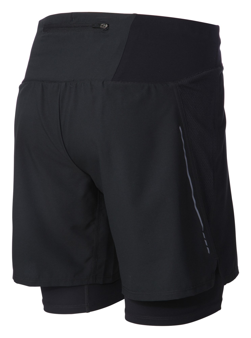 Materiál je 4-směrně elastický, doplněný o další elastické meshové panely. Na zadní části je umístěna kapsa na zip pro gel či pro uložení klíčů, telefonu, atp. Materiál kraťas obsahuje DWR zátěr, který zajišťuje dočasnou voděodolnost. Uvnitř jsou lehké elastické kalhoty s nohavičkou. Stahování v pase je provedeno elastickým popruhem, který je vložen do kříže, takže vám nikdy konec šňůrky nezapadne do dírek. Elastický popruh je také mnohem citlivější k pasu. Reflexní potisk kolem celého obvodu šortek oceníte při nočním návratu. Skvělá volba na dlouhé běhy v přírodě. Materiál: Vnější kraťasy: 100% Polyester Pas a vnitřní kalhoty: 63% Polyamide / 37% Elastane Síťovaný panel: 100% Polyester Hmotnost: 157 g / 5.5 oz