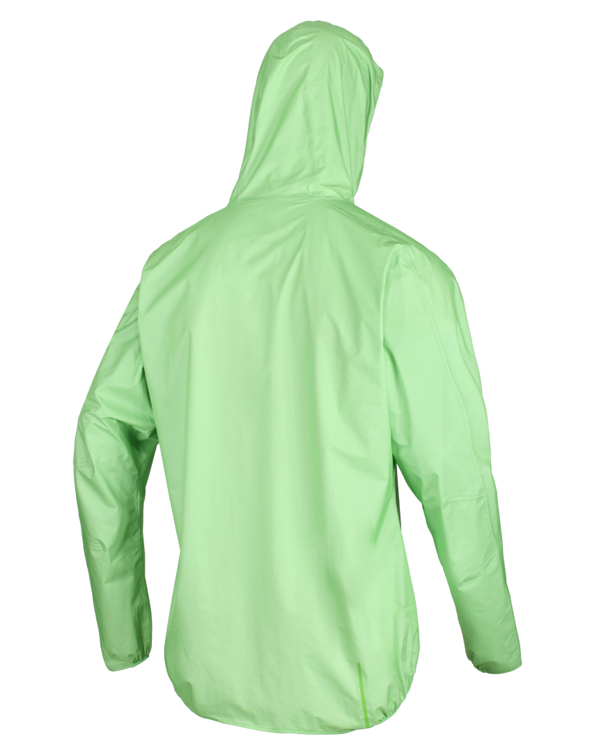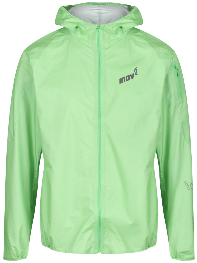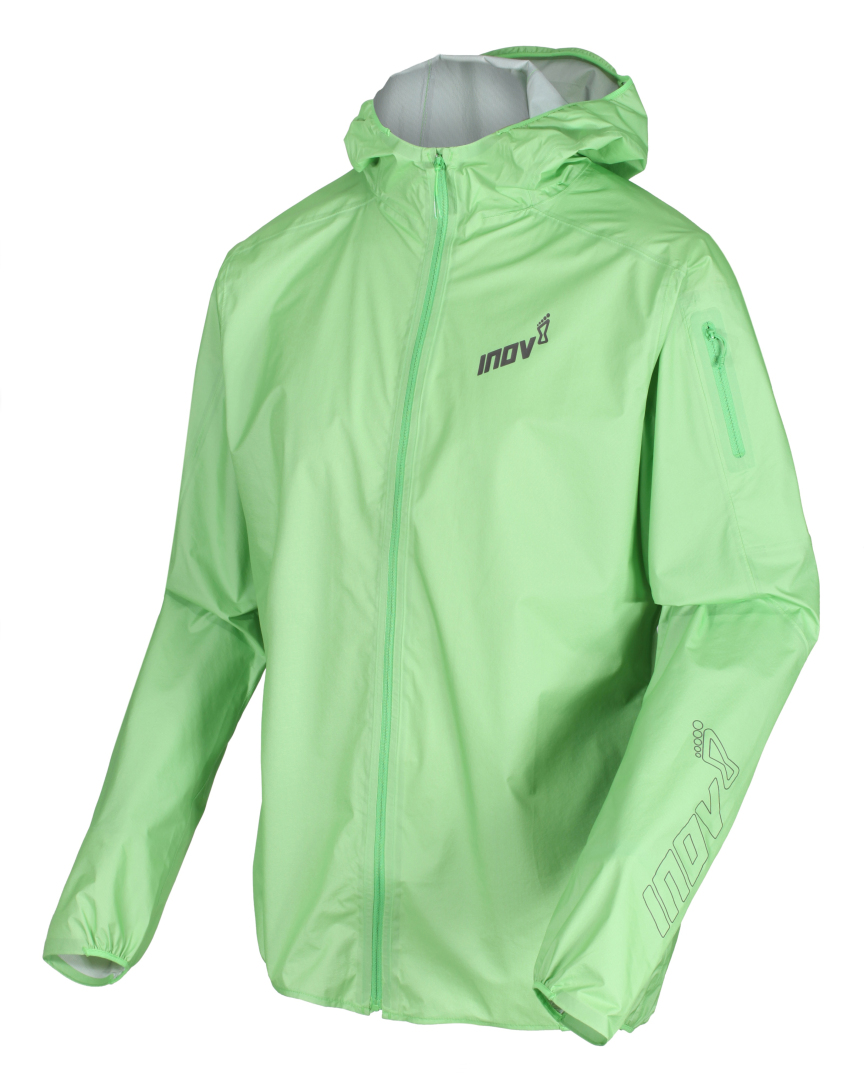 TOHLE. JE. PECKA... Ultralehká sbalitelná běžecká bunda s parametry, které jen tak neuvidíte. Hmotnost této nepromokavé bundy s třívrstvou membránou je neuvěřitelných 106 gramů, což řadí RACESHELL PRO mezi nejlehčí membránové bundy na trhu. Ještě zajímavější jsou parametry, když voděodolnost dosahuje hodnoty 20 000mm vodního sloupce a prodyšnost dokonce MVTR 70 000 g/m2/24h. V RACESHELL PRO se můžete spolehnout na to, že nepromoknete i na to, a že se nebudete nepříjemně potit. Použitá třívrstvá membrána garantuje příjemný pocit i při nošení na holé kůži a velmi dobrou životnost membrány i bundy celkově. Vzhledem k supernízké hmotnosti nedoporučujeme použití pod těžkými batohy s pevnou konstrukcí. U lehkých běžeckých vest se ale není čeho bát. Chybět nesmí prostorná kapuce, nebo reflexní prvky pro bezpečný pohyb po silnicích a cyklostezkách. Bunda se dá sbalit do vlastní kapsy a ve sbaleném stavu zabírá naprosté minimum prostoru, takže jí můžete nosit vždy a všude s sebou. INOV-8 RACESHELL PRO je nekompromisní běžecká bunda pro ty nejnáročnější. Supernízká hmotnost, extrémně vysoká prodyšnost, špičková voděodolnost, solidní mechanická odolnost. Nic víc si o bundy do špatného počasí nemůžete přát.