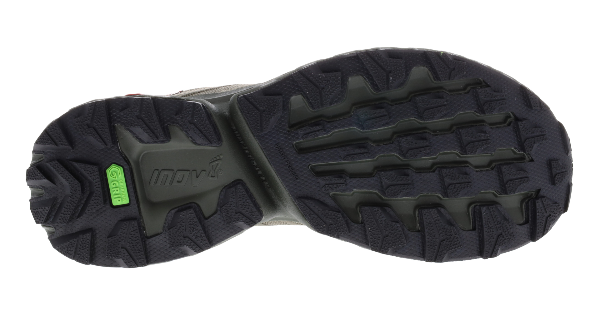 Podešev vychází z osvědčeného konceptu TERRA ULTRA. Základní tvar špuntů je velmi podobný, ale liší se jejich rozložení. Naším cílem byla maximální podpora ohebnosti celé boty, aniž bychom museli obětovat cokoliv ze špičkového gripu určeného do univerzálního trailu. ROCFLY se nebojí dlouhých traverzů po asfaltu a podrží vás i kamenité suti, nebo technickém lesním terénu.