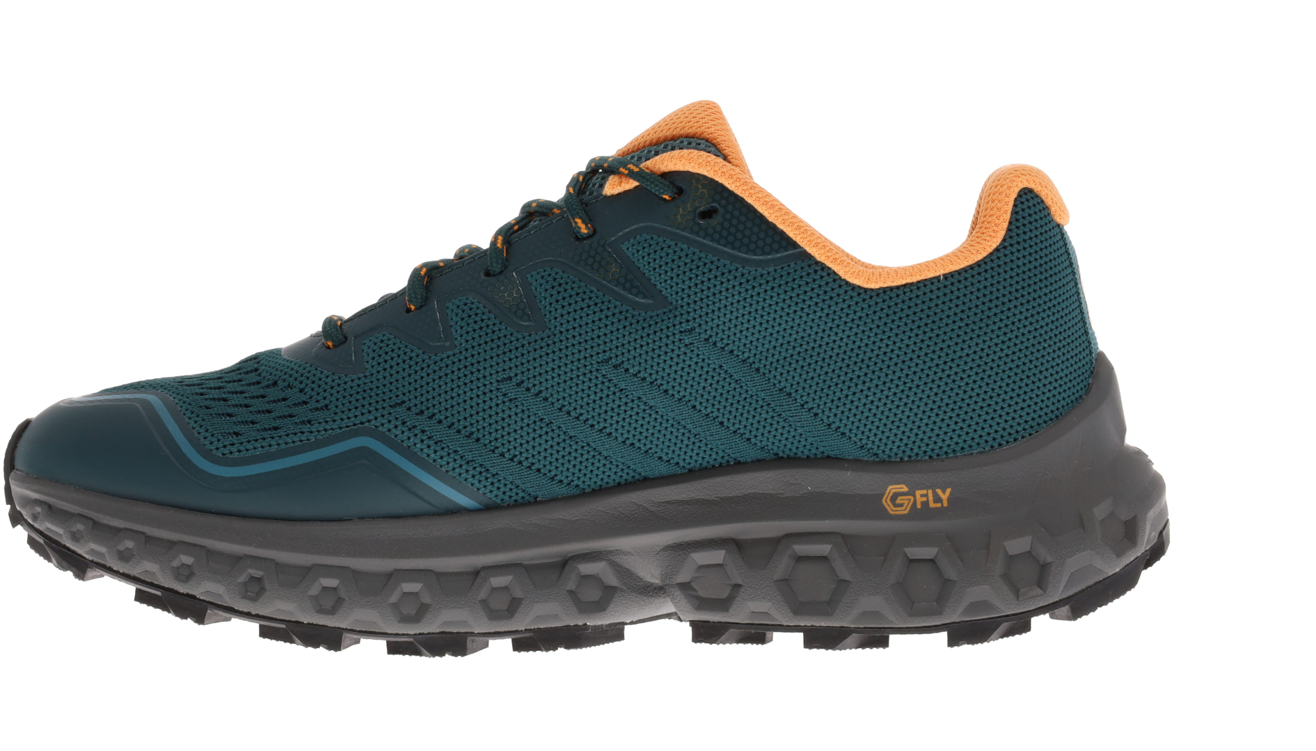 Podešev vychází z osvědčeného konceptu TERRA ULTRA. Základní tvar špuntů je velmi podobný, ale liší se jejich rozložení. Naším cílem byla maximální podpora ohebnosti celé boty, aniž bychom museli obětovat cokoliv ze špičkového gripu určeného do univerzálního trailu. ROCFLY se nebojí dlouhých traverzů po asfaltu a podrží vás i kamenité suti, nebo technickém lesním terénu.