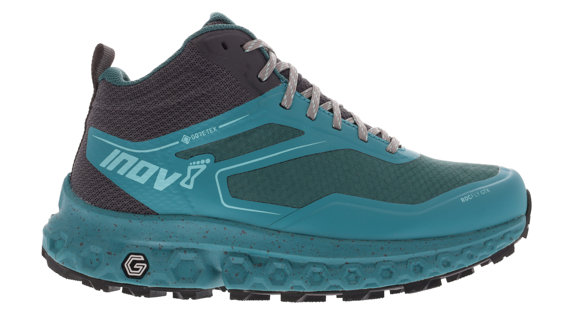 Stvořeno pro dálkové treky. Koncept ROCFLY navazuje na veleúspěšnou ultratrailovou botu TRAILFLY a posouvá jí do světa dálkových treků, speed hikingu a rychlého pohybu v horách obecně. Nyní i ve verzi s nepromokavou membránou GTX. Stejně jako TRAILFLY i ROCFLY stojí na mohutné mezipodešvi z grafenové pěny G-FLY. Tlumení a komfort jsou bezesporu klíčové a zároveň nejžádanější vlastnosti běžeckých i trekových bot. U obutí na dálkové treky to platí dvojnásob, protože s přibývajícími kilometry není nad to udržet chodidla v maximálním pohodlí. Při pohybu v terénu ale kromě pohodlí potřebujete i maximální stabilitu a schopnost číst terén, aby nedošlo k podvrtnutí, nebo pádu. Proto jsme u ROCLFY použili patentovanou technologii ADAPTER FLEX - 10mm hluboký zářez ve střední části tlumení, který radikálně zvedá flexibilitu celé boty a tím i její schopnost vnímat terén. Důležitou roli zde hraje i 6 mm drop podporující přirozenou práci chodidla. Další revoluční novinkou je tlumící pěna G-FLY. Vůbec první tlumící materiál na světě s grafenem. Grafen je nobelovou cenou ověnčený materiál. 200x pevnější než ocel a přitom maximálně pružný a extrémně lehký. Kombinace pěny a grafenu nám umožnila dosáhnout tak vysokých hodnot u odolnosti a energetické návratnosti, jakými se moc jiných bot chlubit nemůže. Těžko bychom hledali lepší základ pro botu, která má za cíl zdolávat desítky až stovky kilometrů rozmanitým terénem. Podešev vychází z osvědčeného konceptu TERRA ULTRA. Základní tvar špuntů je velmi podobný, ale liší se jejich rozložení. Naším cílem byla maximální podpora ohebnosti celé boty, aniž bychom museli obětovat cokoliv ze špičkového gripu určeného do univerzálního trailu. ROCFLY se nebojí dlouhých traverzů po asfaltu a podrží vás i kamenité suti, nebo technickém lesním terénu. Hlavní rozdíly mezi TRAILFLY a ROCFLY najdeme na svršku. Narozdíl od TRAILFLY jakožto běžecké boty si ROCFLY může dovolit nešetřit materiály kvůli hmotnost a plně se soustředit na podporu stability a odolnosti. Svršek zůstává na nejširším kopytě Standard (šířka 5 z 5 na naší škále, kdy 5 značí nejširší možný fit), ale místo odlehčené tkaniny je tvořen vysoce odolnou strukturovano upleteninou. Ta velmi dobře dýchá a rychle schne. Navíc přesně a příjemně obepíná chodidlo při takřka nezničitelné odolnosti ještě umocněné mohutnou obsázkou a vyztužením kolem tkaniček. Výsledkem je vysoce odolná a skvěle padnoucí bota, ve které se nemusíte bát vyrazit ani stovky kilometrů do divočiny, kde jakékoliv selhání materiálu znamená fatální problém. Verze ROCFLY 390 pracuje se středně vysokým mid-cut svrškem, který dokonale stabilizuje chodidlo. To se může hodit hned z několika důvodů. ať už je to několik kilogramů vážící batoh, kumulovaná únava, nebo technicky náročný horský terén, zvýšená stabilita je prvek, který dříve či později ocení každý hiker. Kromě stability i vyšší komín boty funguje jako ochrana před zapadáváním nečistot dovnitř boty. Ať už se chystáte na Stezku českem, cestu hrdinů SNP, korsickou GR20, nebo na jiný exotičtější trek… ROCFLY 390 vám bude skvělým a spolehlivým společníkem. Den za dnem, kilometr za kilometrem.