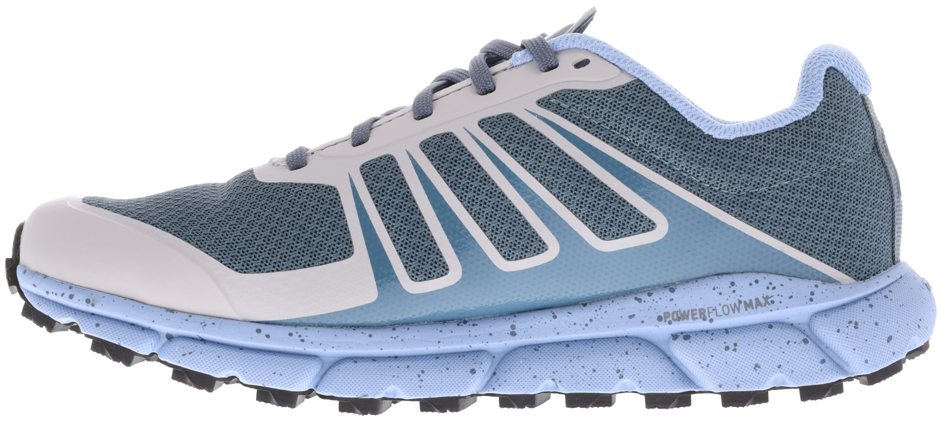 Nová generace oblíbené univerzální krosovky. TRAILFLY G 270 stojí na základech modelu TERRA ULTRA G 270 se všemi jeho přednostmi v čele s maximální přirozeností a špičkovým citem pro terén i techniku běhu. Srdce boty i nadále tvoří nulový drop v kombinaci s komfortní tlumící vrstvou a spolehlivým gripem. O tlumení se stará pěna POWERFLOW MAX s ideálním poměrem mezi měkkostí, vnímavostní a energetickou návratností. Celkový komfort výrazně ovlivňuje i vkládací 6mm stélka BOOMERANG z vysoce energetické TPU pěny. Kombinace komfortu a živosti dosažená u TERRA ULTRA G 270 je neporovnatelná s jakýmikoliv botami INOV-8 “staré éry”. Nebyli bychom to ale my, pokud bychom na úkor komfortu obětovali přirozenost a skvělý cit pro terén. Celková míra tlumení vč. stélky je 18 milimetrů. Tato hodnota je dostatečně vysoká, abyste mohli v pohodlí běžet nekonečně dlouho a zároveň dostatečně nízká, aby celá bota zůstala maximálně flexibilní a skvěle četla terén. Vysokou propriocepci podporuje i nulový drop, kterého se ale díky celkové měkkosti tlumení nemusí bát ani začínající a hobby běžci. Nulový drop zůstává i nadále specifickým prvkem tohoto modelu. Vzhledem k přepracovanému tlumení je ale TRAILFLY G 270 přístupnější i méně zkušeným běžcům, kteří nemají ideální techniku běhu přes přední část chodidla. Díky mohutnější mezipodešvi se výrazně zvedla i ochrana chodidla před naražením při běhu v kamenitém trailu. Důležitým prvkem je nízká hmotnost. Kromě úspory energie se pozitivní vliv projevuje i vysokou dynamikou a pružností. Tyto vlastnosti využijete především při tempovém běhu a závodech po kombinovaném povrchu. Pružné TPU tlumení se postará o to, že v téhle botě nebudete chtít běžet pomalu. Univerzální podešev má spolehlivý grip i v techničtějším trailu a na měkkém podkladu. Velký důraz je i nadále kladen na univerzálnost celé boty, takže grip není tak ostrý, aby vás limitoval při běhu po silnici a zpevněných cestách. Samozřejmostí je použití grafénu pro bezkonkurenční poměr mezi přilnavostí a odolností. Svršek zůstává napnutý na našem nejširším kopytě (5, standard fit), ale došlo k lehkému přepracování ochranné 3D TPU vrstvy. Přední část boty je nově otevřenější, aby poskytla maximum prostoru prstům a příčné klenbě. Fixace nártu uvnitř boty je pak dostatečná pro rychlý pohyb i v technický náročnějším terénu. TRAILFLY G 270 využívá kombinaci strukturované tkaniny kryté odolným pogumováním a svršek díky tomu sedí na noze jako ulitý.