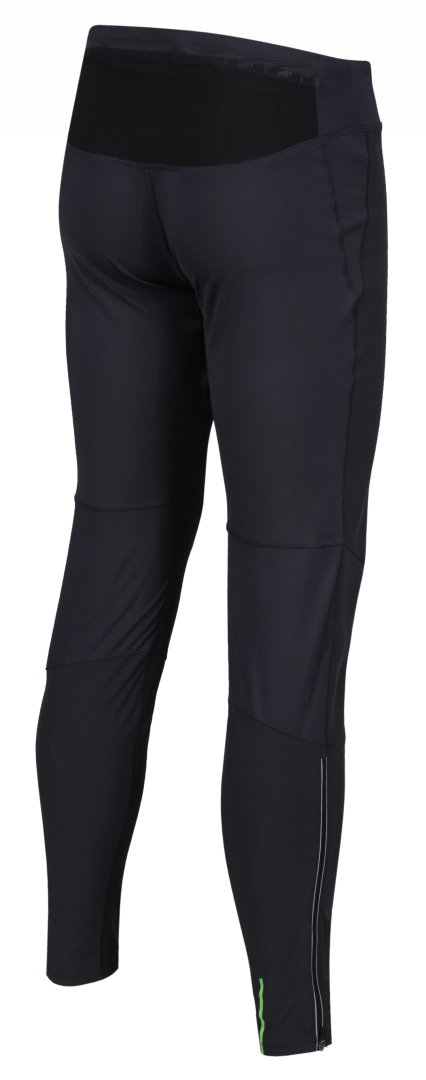 Pevný, lehký, vodě i větruodolný 3-vrstvý softshellový materiál z přední strany nabídne vysoký komfort, odolnost a tepelný komfort. Zadní, elastický díl je vyroben ze 4-směrně elastické pleteniny s vynikající elasticitou, prodyšností a odolností. Zadní lýtkový díl je vyroben z pevnějšího polyamidu, má tedy menší elasticitu a naopak větší odolnost. Na vnější straně lýtek jsou zipy, které mají navíc reflexní podtisk. Perfektní, atletický a anatomický střih kalhot je složen z několika dílů, které podporují přirozený pohyb. I přes použití plochých švů je velmi dobře řešen rozkrok, kde žádné švy nezasahují do míst, kde dochází k výraznému tření. Stahování v pase je řešeno poměrně široký, pásem, ve kterém je vložena stahovací guma. Zadní díl obshuje velkou kapsu na zip, ve které je všita gumička na uchycení klíčů. Přes celou plochu zadního lemu je pak našita druhá, prodyšná kapsa ukončená elastickou manžetou. Do této kapsy bez problémů vložíte třeba větrovku WINDSHELL. Zadní díl má z vnitřní strany silikonový pásek pro lepší uchycení kalhoty na těle.