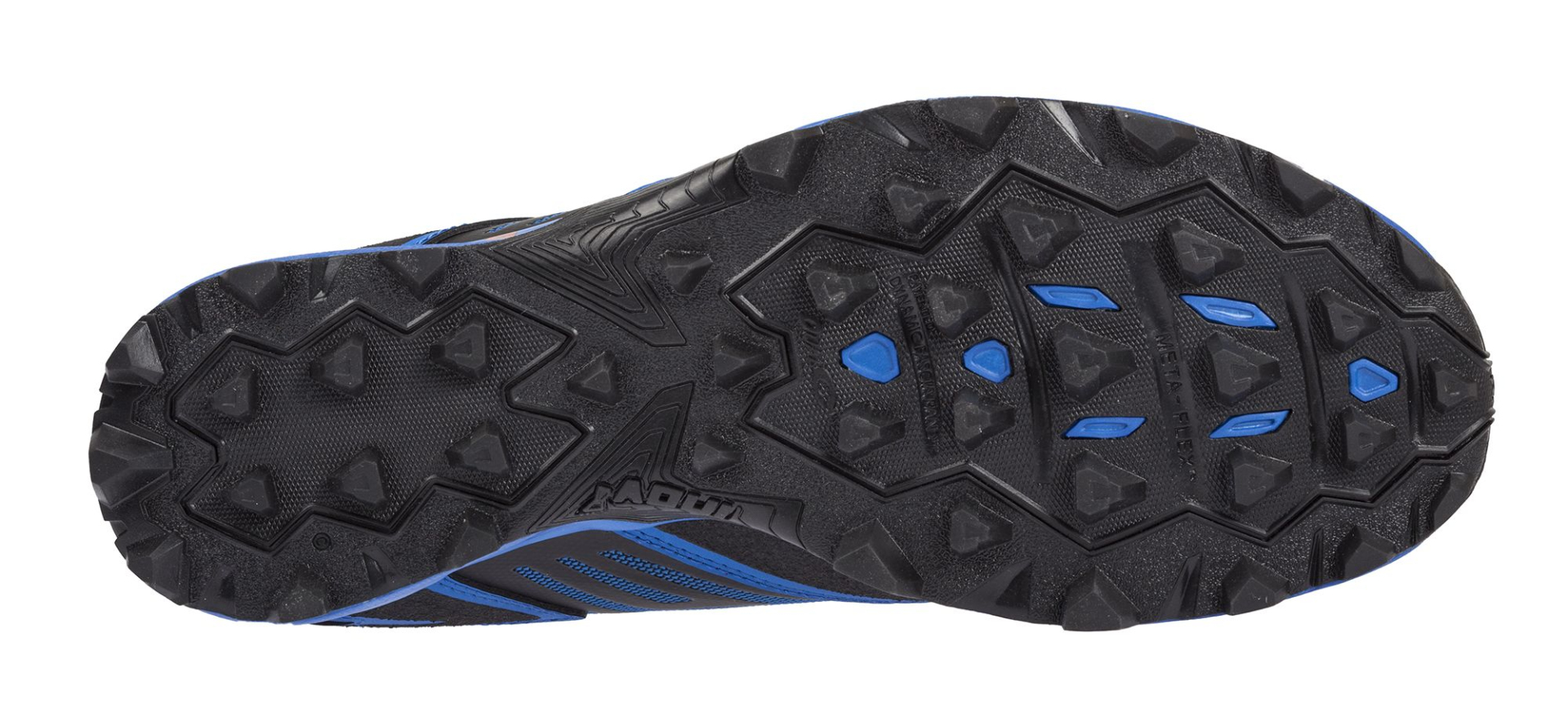 Byl tady významnný požadavek, nabídnout v offroadové řadě širokou, objemovou/tréninkovou botu, která unese i těžkého běžce a vydrží maximální zátěž. A právě proto přichází X-TALON ULTRA 260. Podešev vychází z X-TALONU 225 s tím rozdílem, že špunty mají větší plochu, aby unesly těžší běžce. Výška špuntů je 8 mm, jistě a bezpečně vás dostane z každého bláta nebo hlubokého rozbředlého sněhu. Obvodová část podešve má tvrdší směs pro dokonalý záběr v bahně a na sněhu, vnitřní část naopak měkkou kontaktní pryž s vynikající adhezí na kamenech a skále. Výška špuntů je 8 mm. Mezipodešev POWERFLOW má drop 8 mm a je složena ze dvou dílů. Patní část má měkčí směs a nabízí o 10% vyšší úroveň tlumení, přední část má vyšší hustotu, je tedy lehce tvrdší a nabídne přesnější a efektivnější odraz. Polymerový prstenec DFB, který kopíruje tvar plantární fascie je vložen mezi podešev a mezipodešev, je ukončen za hranou metatarzálu a při efektivním běžeckém stylu lehce napomáhá k odrazu (pružinový efekt). Výškové parametry mezipodešve jsou následující: pata 16 mm, špička 8 mm, tomu odpovídá drop 8 mm. Komfort uvnitř boty lehce navyšuje skládací stélka, která má konstantní výšku 6 mm a je vyrobena z měkčené směsi POWERFLOW. Balistický nylon s voděodolným zátěrem zajistí neměnný tvar svršku i v případě totálního promočení, bezešvost svršku zase nabídne skvělý komfort. Trojitě vyztužená špička ochrání prsty před nakopnutím různých šutrů. Svršek je enormně pevný a díky tomu je pochopitleně sníženy prodyšnost boty. Měkký opatek je citlivý k patám a achilovkám a v případě výrustků na patě jej lze jednoduše aktivovat a customizovat na takto deformované chodidla (postup vyžadujte od prodejce). Bezkonkurenční grip této boty oceníte na těch nejdelších překážkových bězích v orienťáku nebo v těžkém technickém trailu. Váha: 260g (UK8)