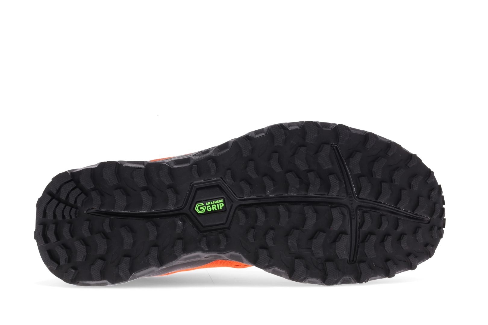 Podešev z grafenové směsi G-GRIP má jemný vzorek, který skvěle drží a vydrží na asfaltu a zároveň je na něj spoleh i v lehkém terénu. Výška gripu 4 milimetry je i díky agresivnímu tvarování dostatečná pro běh po polních i lesních cestách, nebo pěšinách. Hustota vzorku pak zajišťuje velkou kontaktní plochu, která nezklame ani na mokrém hladkém asfaltu, kde mívají klasické trailové boty velké problémy.
