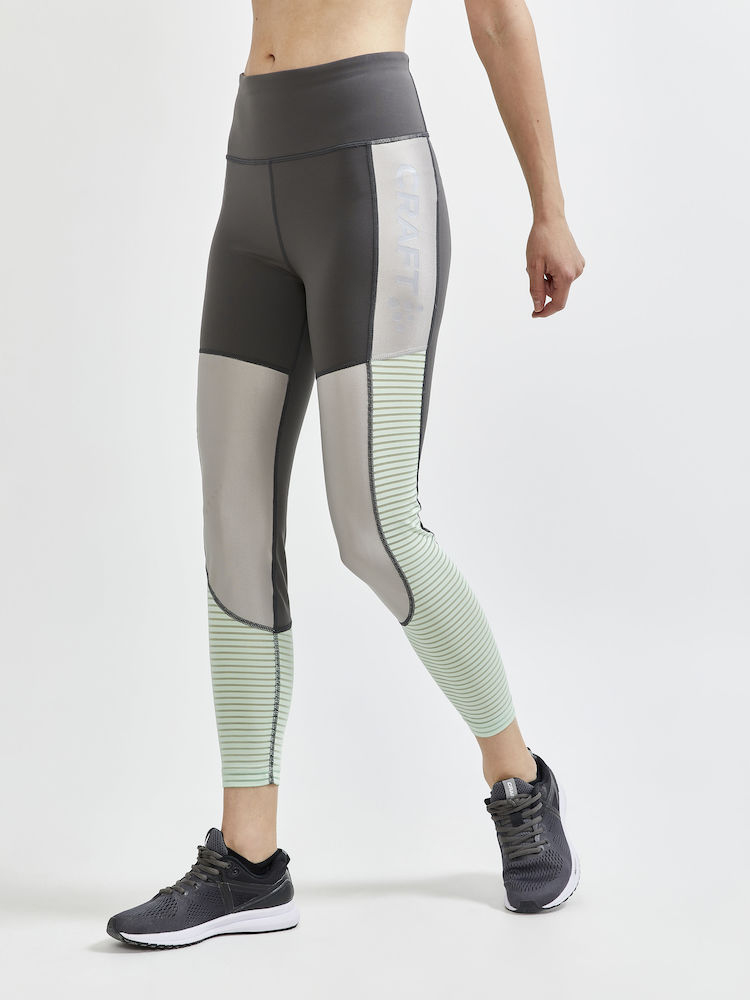Dámské dlouhé elastické kalhoty CRAFT ADV Charge Shiny s vyšším pasem a efektními meshovými panely jsou vhodné na sportovní i volnočasové aktivity.