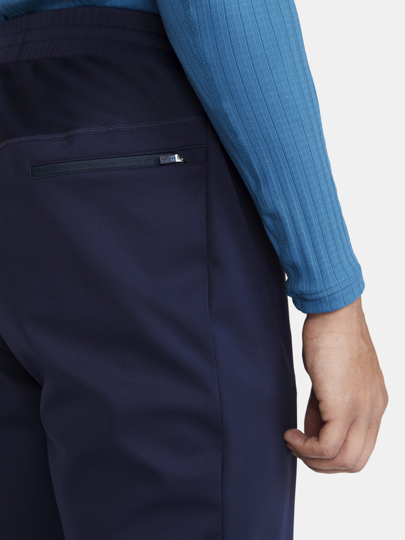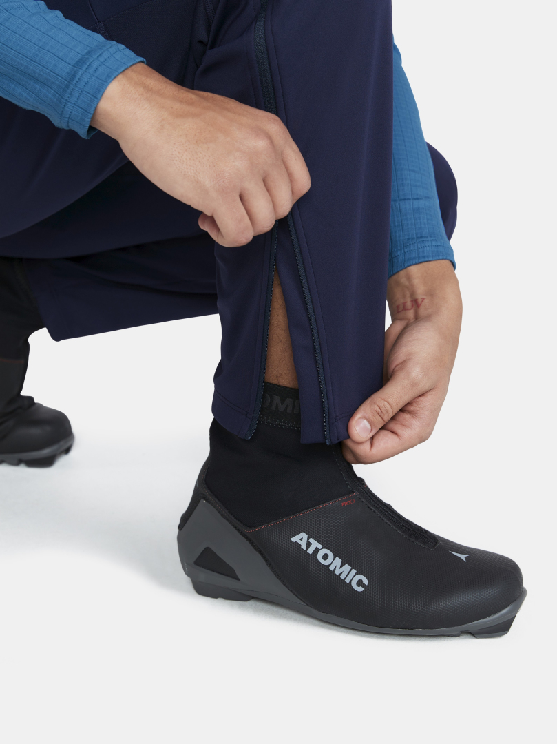 Pánské softshelové kalhoty CRAFT CORE Nordic Training jsou primárně určeny pro běžecké lyžování, ale jsou velmi dobře využitelné i pro volnočasové nošení v zimním období. Materiál: 100% polyester, Membrána Ventair - 100% polyuretan, 100% polyester - třívrstvý, softhellový materiál na přední i zadní straně - na bedrech a pod koleny ze zadní strany elastický materiál pro vyšší prodyšnost - předtvarovaná kolena - v pase široká guma plus možnost stažení na šňůrku - jedna zadní kapsa na zip - ukončení nohavic do gum - na koncích nohavic zipy podložené légami