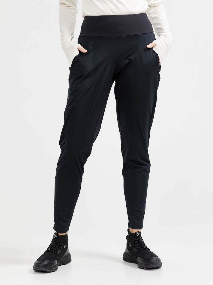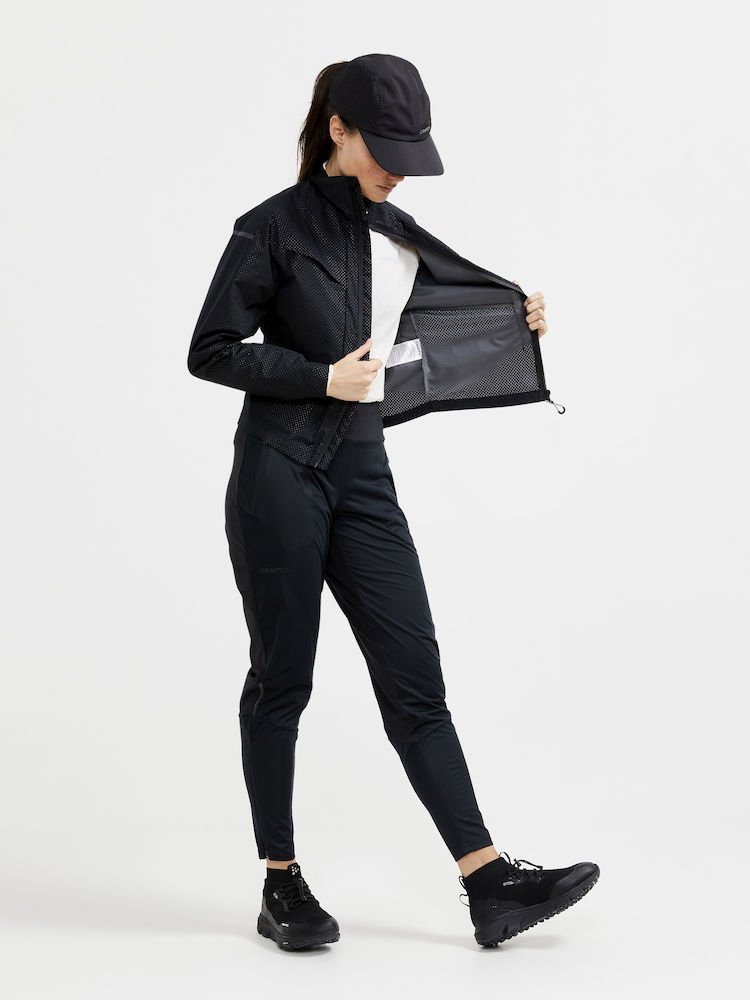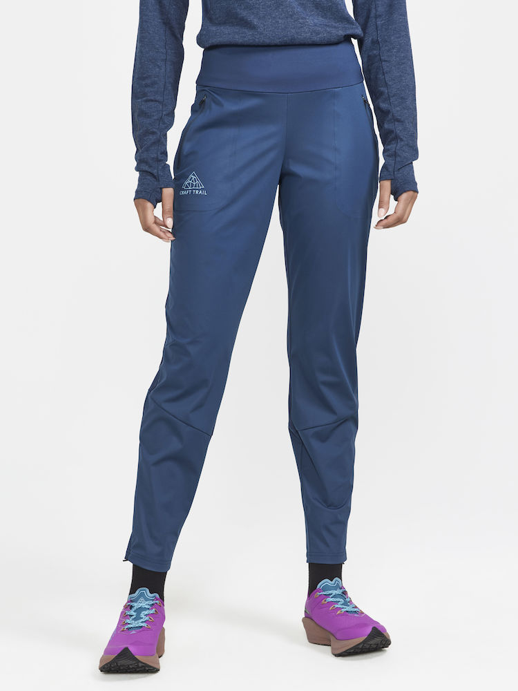 Dámské technické kalhoty CRAFT PRO Hydro z prodyšné větru a voděodolné membrány Ventair Wind jsou určené na výběhy v nepříznivém počasí.
