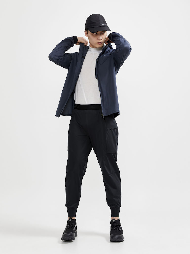 Pánské technické kalhoty CRAFT PRO Hydro Crago z prodyšné větru a voděodolné membrány Ventair Wind jsou určené na výběhy v nepříznivém počasí.