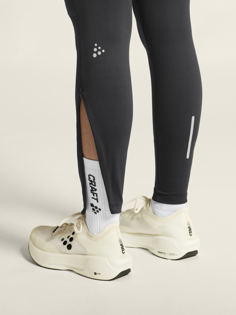 CRAFT SubZ Tights 4 jsou vysoce funkční běžecké legíny s komfortní izolací v oblasti stehen pro tréninky v chladném počasí. Třívrstvá konstrukce v přední části, která zahrnuje větruodolnou vnější vrstvu, lehkou izolační vrstvu a podšívku, dodá potřebný tepelný komfort. Zbylé části tvoří elastický a vysoce funkční materiál krytý z vnitřní části příjemným brushem. I díky širokému pasu mají kalhoty padnoucí střih.