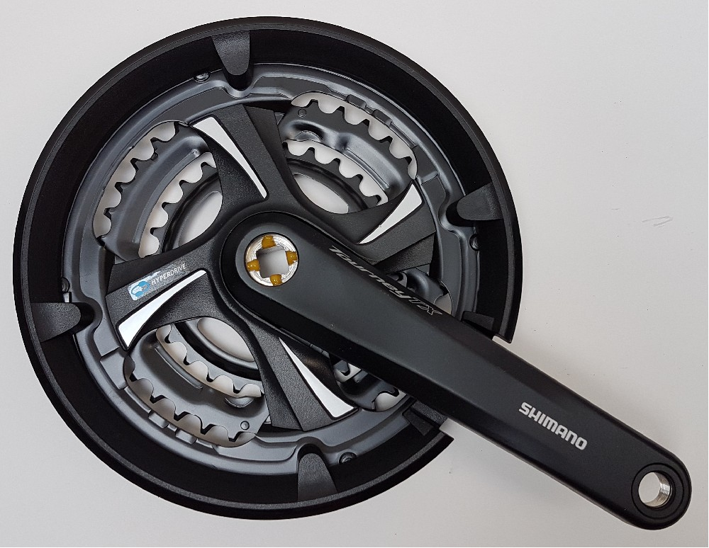 ILUSTRAČNÍ FOTO!!! KLIKY JSOU BEZ KRYTU kliky Shimano FCTX 801, převodníky 42/32/22, černé, délka 170 mm, na čtyřhran, 7/8 speed bez krytu středová osa: 122,5 mm