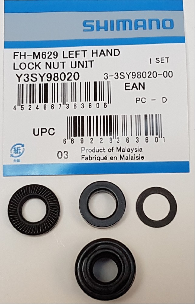 Y3SY98020, kónus zadní Shimano, levý s maticí a podložkou, průměr 17 mm, délka 15,2mm, pro osu 10mm, 3 x podložka - délka 6 mm + 4 mm + 0,5 mm pro náboje M675