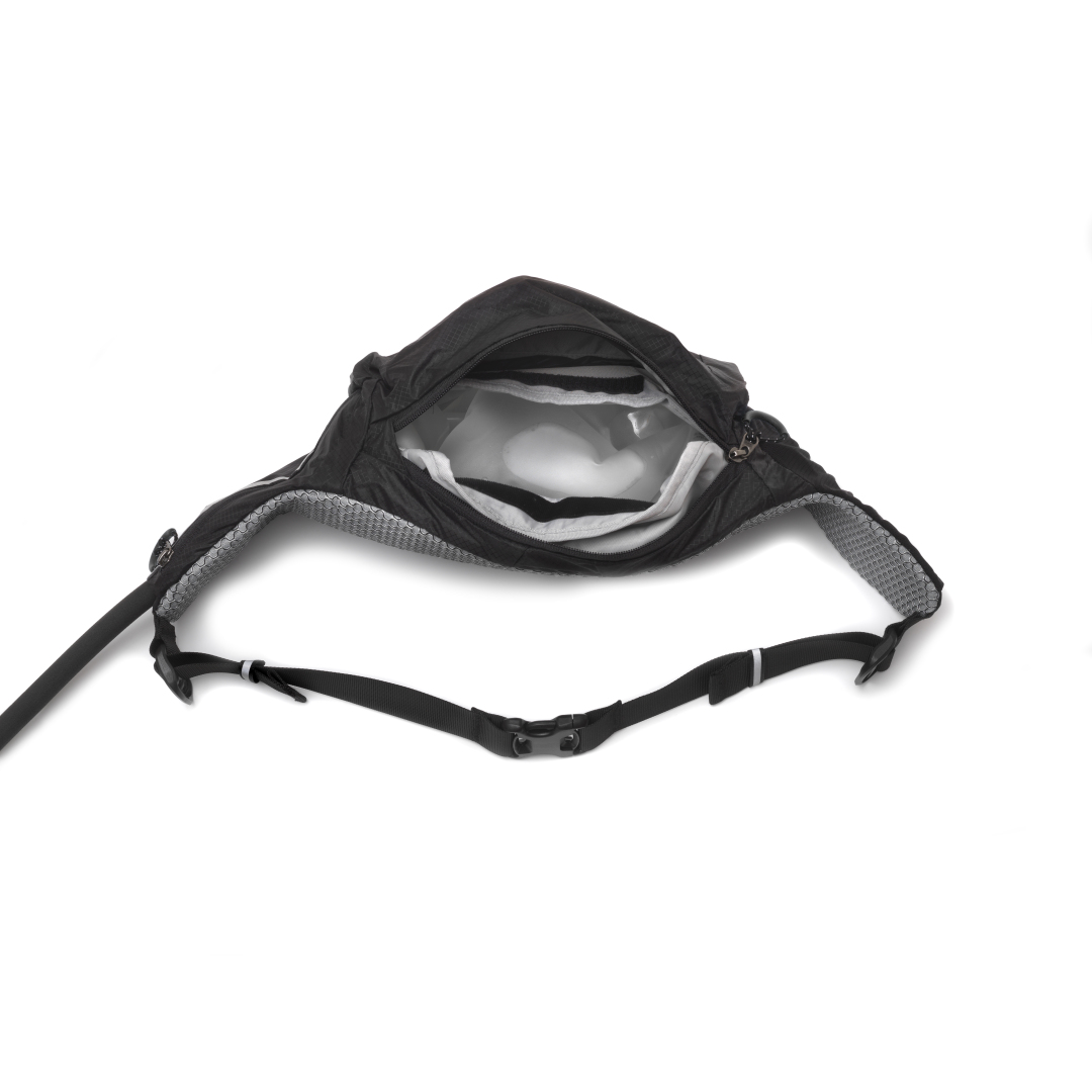Hlavní komora je centrálně umístěna na zadní straně pro pohodlné rozložení hmotnosti , po stranách jsou dvě kapsy, jedna zipová - voděodolná a druhá síťovaná umožňující rychlý přístup – tyčinky, gely... Boční kapsy nejsou příliš velké, takže můžete plynule pohybovat rukama. Ledvinka je vyrobena z lehkých rychleschnoucích materiálů. Zádová část je ze vzdušné 3D síťoviny pro optimální ventilaci. Utažení – povolení bederního pásu lze snadno upravit i za pohybu v rukavicích.