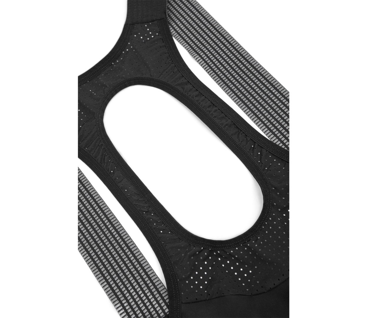 Vyrobeno z elastického mikrovlákna se strategicky umístěným polstrováním na kontaktních místech, s různou hustotou přizpůsobenou specifickým potřebám každé části těla. Polstrování je vyvážené a prodyšné, přičemž oblast sedáku poskytuje 8 mm polstrování a hustotu 90 kg/m3 a nejcitlivější oblast poskytuje 4 mm polstrování a hustotu 60 kg/m3.