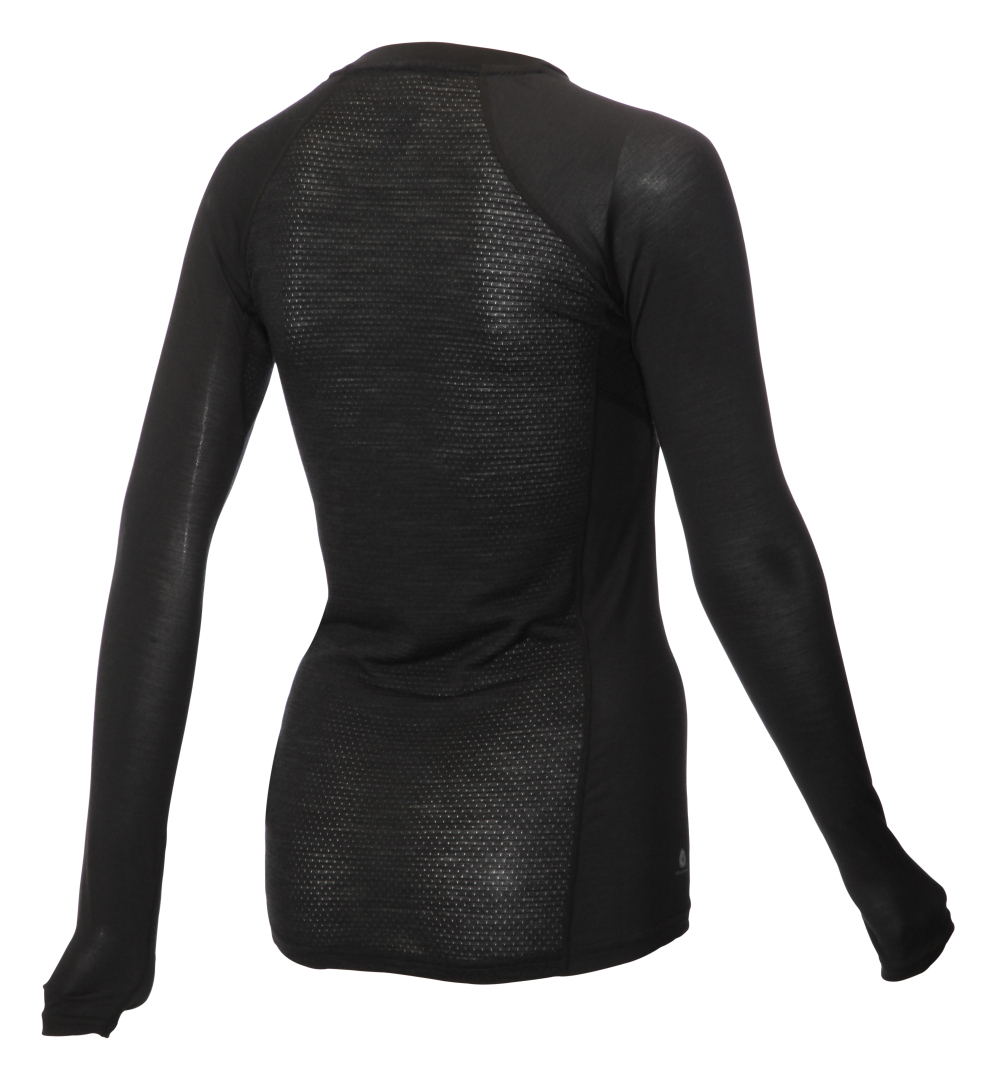 Superjemná australská merino vlna o tlošťce vlákna 15,5 mikronu, běžecký střih s prodlouženými rukávy a očky na palce, ventilační panely o rozdílném materiálovém složení pro maximální funkčnost v různých klimatických podmínkách, ale hlavně skvělý komfort. Hlavní panely trika mají materiálové složení 64% merino vlna, 36%polyester, primárním úkolem je zde udežet tepelný komfort a velmi rychle odvést vlhkost od těla. Zádový díl a podpaží obsahují materiál o složení 64% merino vlna, 20% viskoza, 15% polyamid a 1% Lycra elastine a tyto mají za úkol maximálně venitlovat. Odour free, jemnost a citlivost pleteniny ocení každý uživatel, překvapeni budou i ti, které dodnes běžné merino "kousalo". Váha: 132g pánské triko, 113g dámské triko