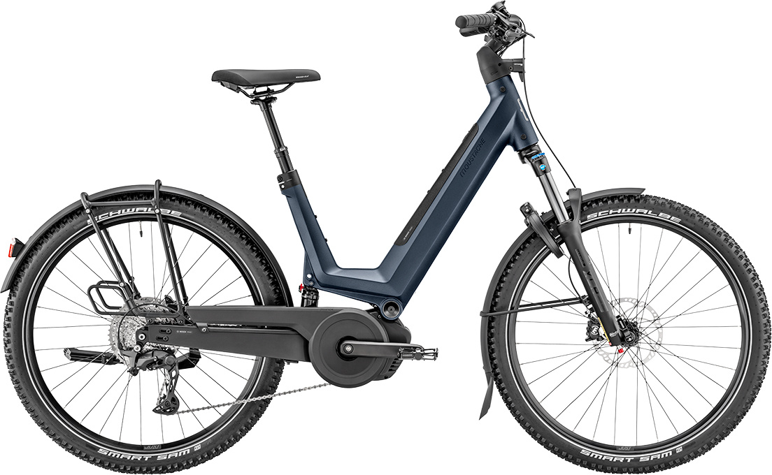 MOUSTACHE Samedi 27 Xroad 6 FS je vrcholem modelové řady Xroad – plně odpružené trekingové elektrokolo připravené na dobrodružství ve městě i mimo něj. Srdcem kola je motor Bosch Performance Line CX 5. generace s točivým momentem až 100 Nm, který si poradí i s náročným stoupáním. Baterie s kapacitou 600 Wh je plně integrována do rámu a zajišťuje spolehlivý dojezd. Komfort zvyšuje odpružená vidlice SR Suntour se zdvihem 120 mm a zadní tlumič Magic Grip Control s propracovanou kinematikou rámu. Moderní kokpit je vybaven barevným displejem Bosch Kiox 500. Samozřejmostí je praktická výbava pro každodenní použití – nosič MIK HD, integrované blatníky, výkonné světlo Trelock a příprava pro rámový zámek a Moustache Protect Option.
