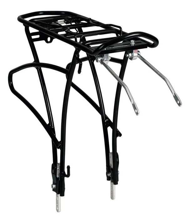 pro upevnění zavazadel a pumpičky. Univerzální úchyt, který lze snadno přesně přizpůsobit, ho předurčuje pro většinu bicyklových rámů s V-Brake brzdami. V balení jsou také přiloženy adaptéry pro montáž na kotoučové brzdy.