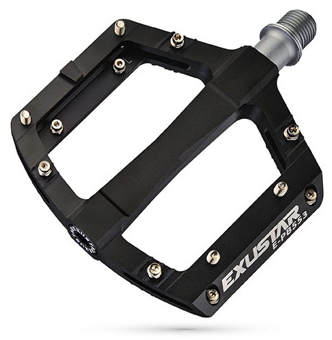 Odlehčené pedály Exustar E-PB553 s unikátní stavbou těla jsou vyrobené z extrudovaného hliníku s CrMo osou a posazené na jehličkových ložiscích. Pro lepší kontakt s botou jsou pedály po obou stranách opatřené protiskluzovými vyměnitelnými piny. Pedály využijete zejména pro MTB a BMX.